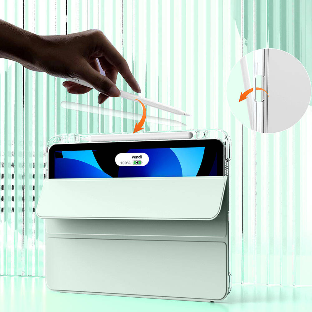 Apple iPad Air 11 2024 Kılıf Magnetik Ayrılabilen Airbagli Zore Sliding Tablet Kılıfı Açık Yeşil