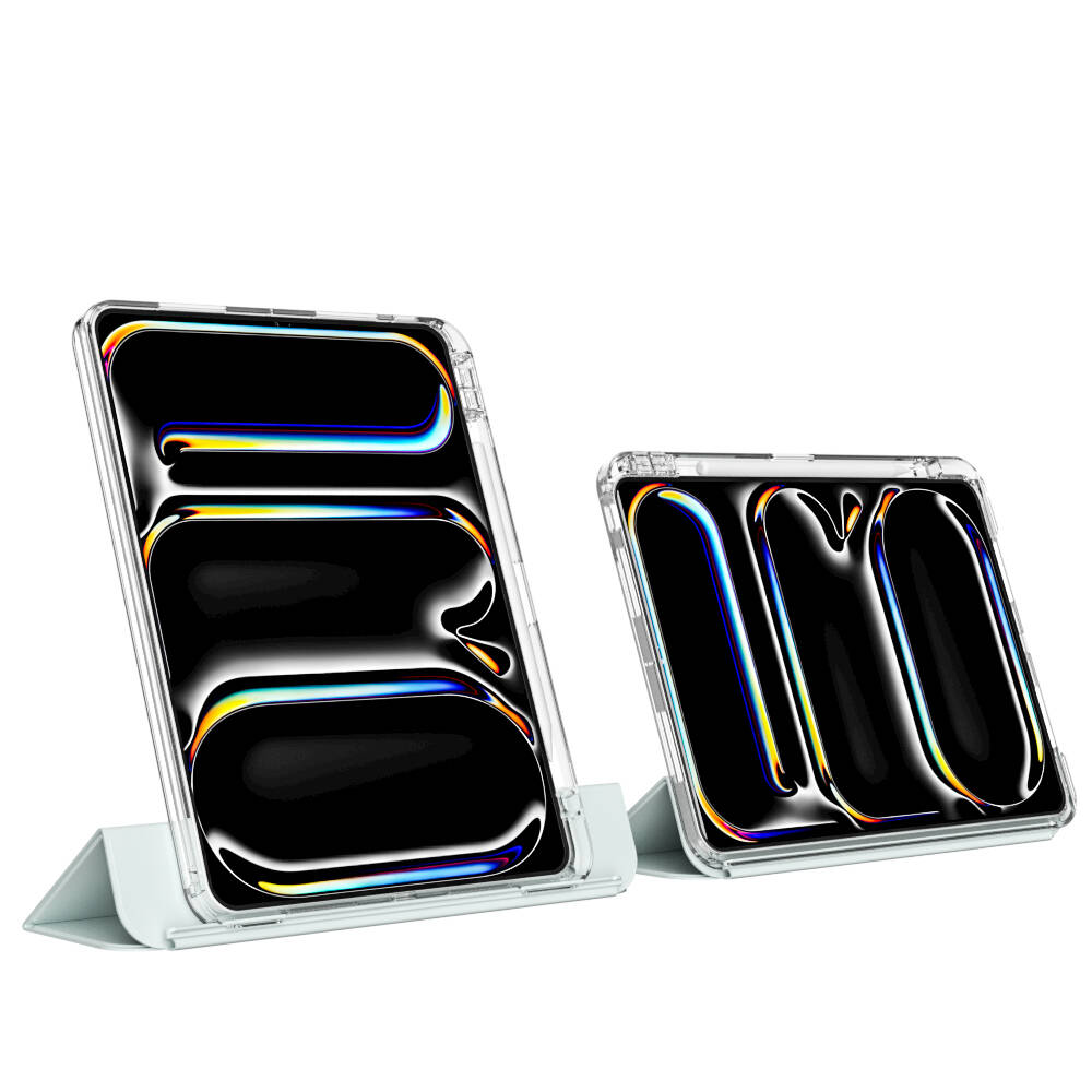 Kılıfın arka kısmı, sert ve şeffaf PC malzemeden üretilmiştir. Bu sayede, tabletinizin orijinal tasarımını sergilerken üstün koruma sağlar. Mikro fiber iç astarı ile tabletinizin ekranını çiziklerden korur. Esnek TPU çerçeve, düşmelere ve darbelere karşı ekstra koruma sağlar.