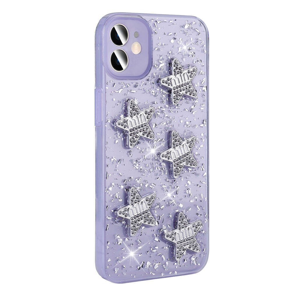 Apple iPhone 11 Kılıf Airbagli Simli Arka Yüzey Zore Işıltı Silikon Kapak Lila