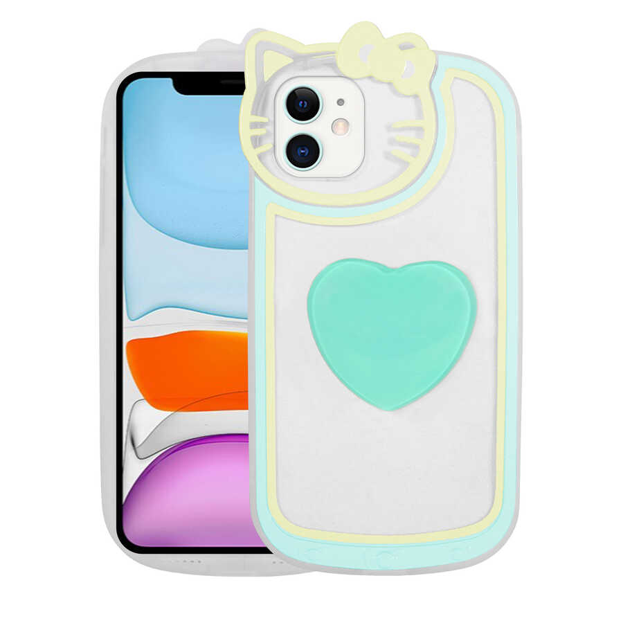 Apple iPhone 11 Kılıf Kedi Figürlü Transparan Pop Soketli Zore Ritmik Kapak Yeşil