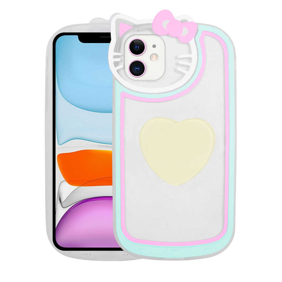 Apple iPhone 11 Kılıf Kedi Figürlü Transparan Pop Soketli Zore Ritmik Kapak Beyaz