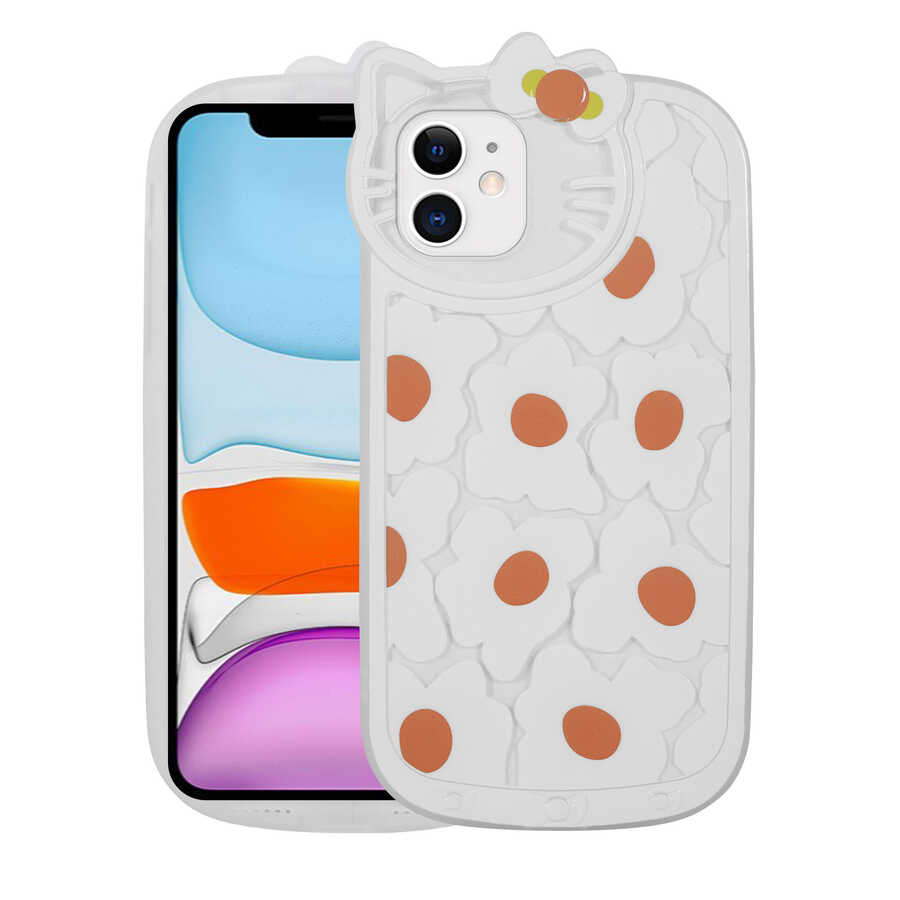 Apple iPhone 11 Kılıf Kedi Figürlü Transparan Sert Silikon Zore Kity Kapak Papatya