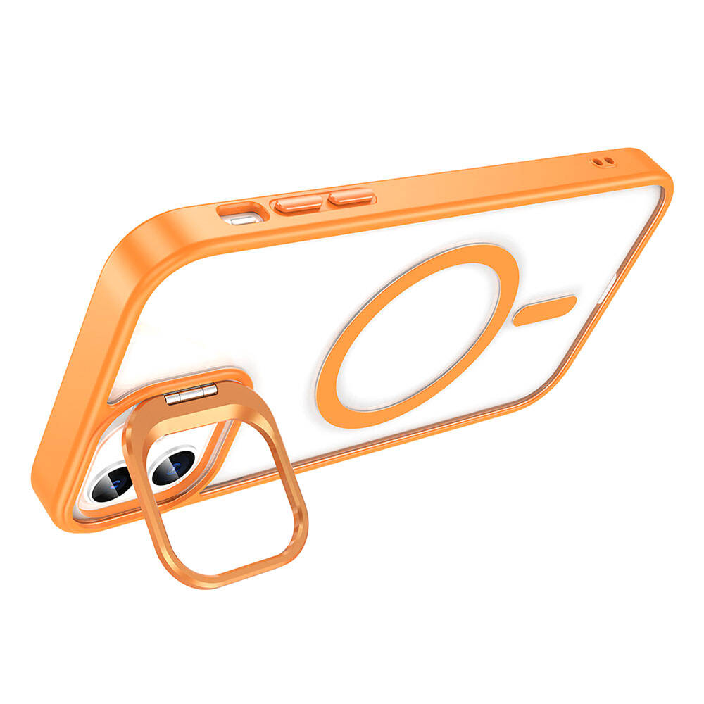 Apple iPhone 11 Kılıf M-safe Şarj Özellikli Standlı Zore M-safe Klon Lensli Kapak Turuncu
