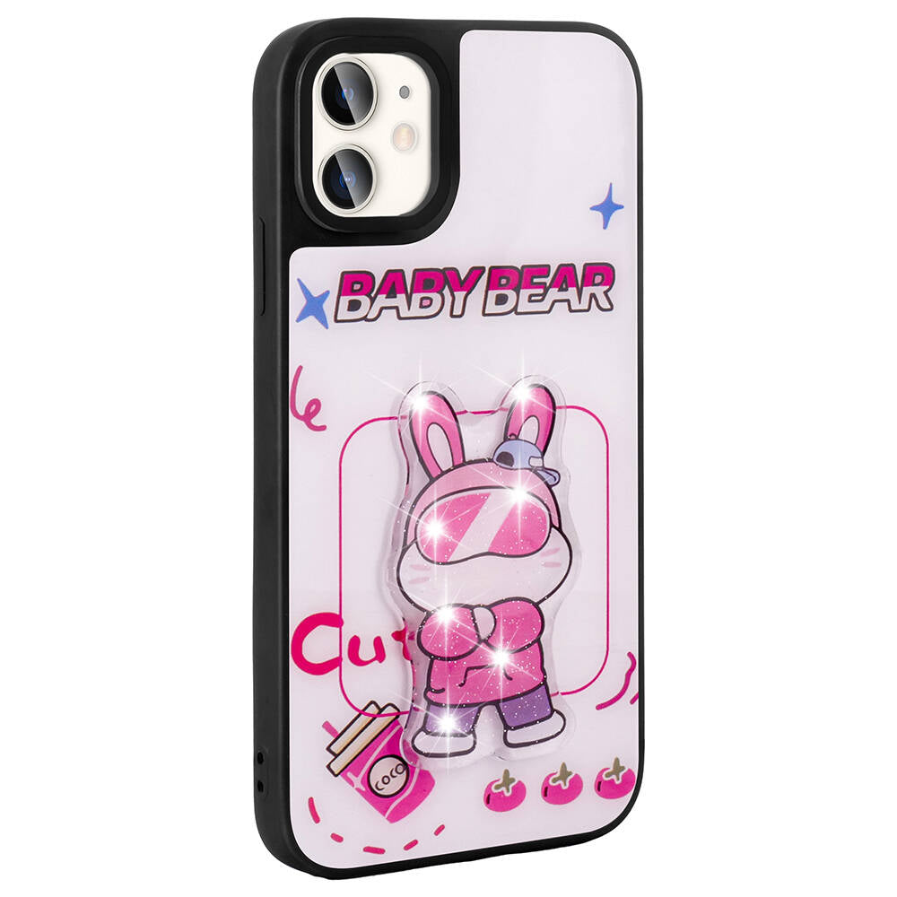 Apple iPhone 11 Kılıf Parlayan Kabartmalı İkonik Figürlü Zore Amas Silikon Kapak Siyah
