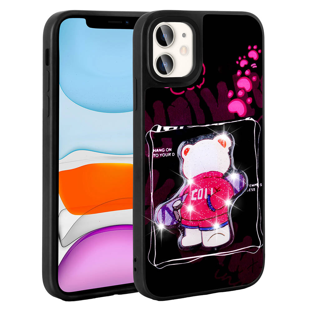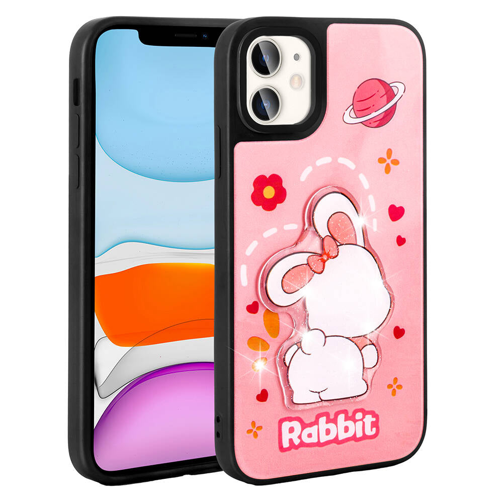 Apple iPhone 11 Kılıf Parlayan Kabartmalı İkonik Figürlü Zore Amas Silikon Kapak Pembe