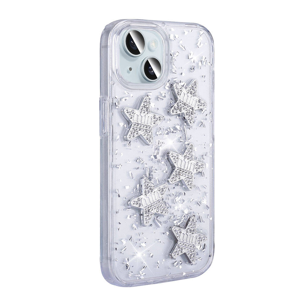 Apple iPhone 13 Kılıf Airbagli Simli Arka Yüzey Zore Işıltı Silikon Kapak Beyaz-Yıldız