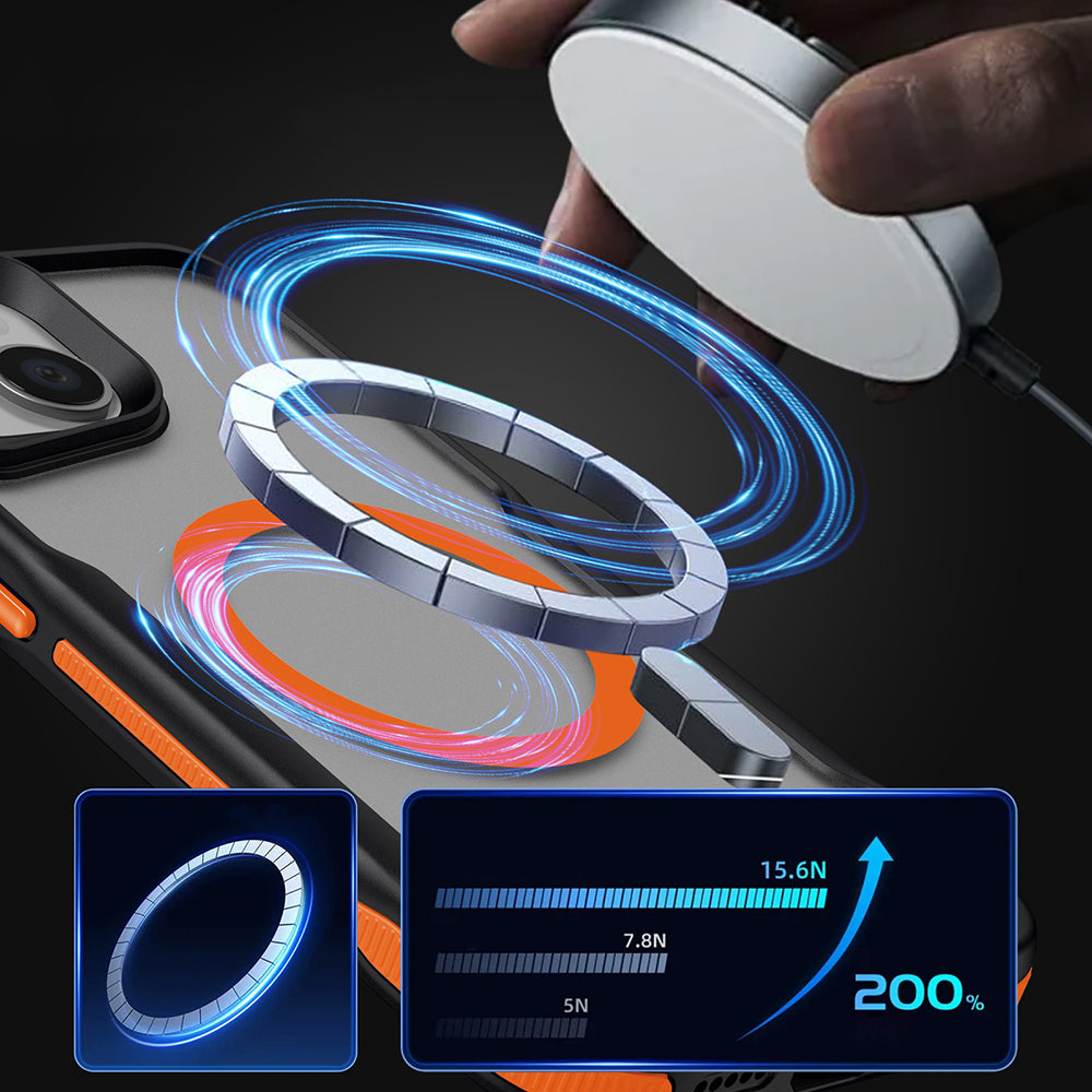 Magsafe şarj özelliği ile kablosuz şarj cihazlarına uyumlu olan bu kılıf, ultra güçlü mıknatıs teknolojisi sayesinde cihazınızı güvenle sabitler. TPU+PC malzemeden üretilen dayanıklı yapısı, uzun ömürlü kullanım sunarken çevre dostu özellikleriyle de dikkat çeker. Mat arka yüzey, lekelere ve parmak izlerine karşı dayanıklıdır, böylece kılıfınız her zaman temiz ve düzenli görünür.