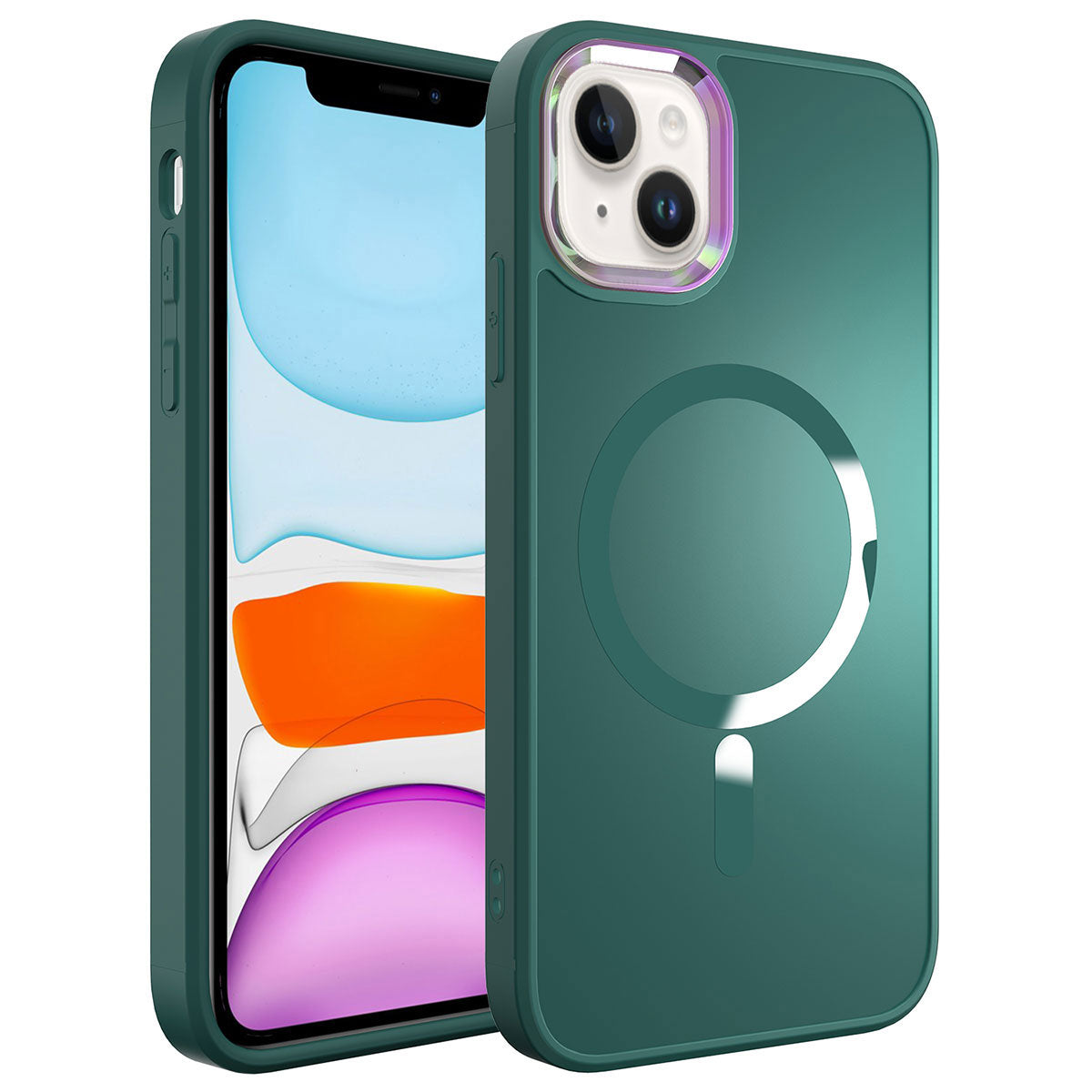 Apple iPhone 13 Kılıf M-safe Wireless Şarj Özellikli Zore Stil Kapak Koyu Yeşil