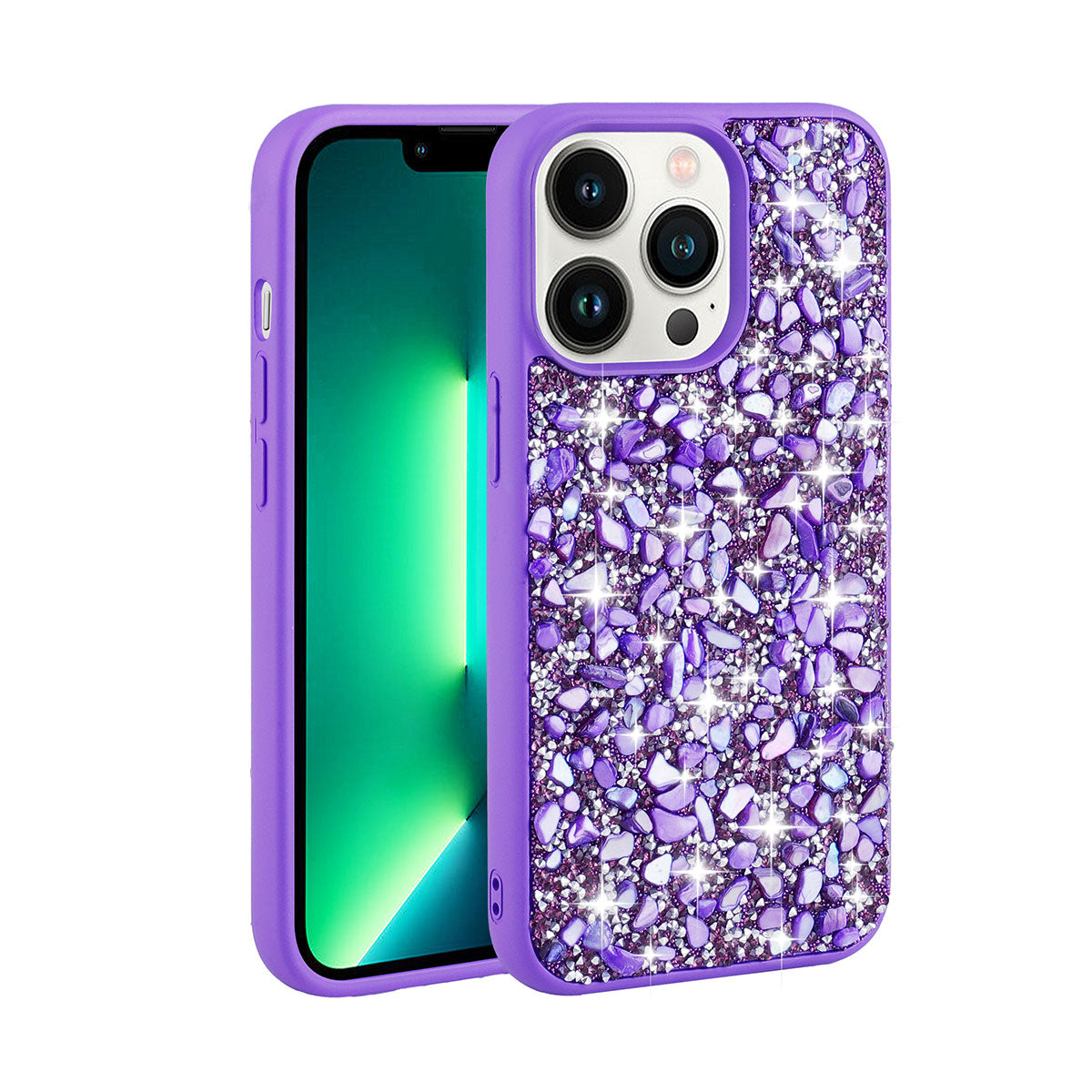 Apple iPhone 13 Pro Kılıf Parlak Taşlı Tasarım Zore Linea Kapak Gümüş