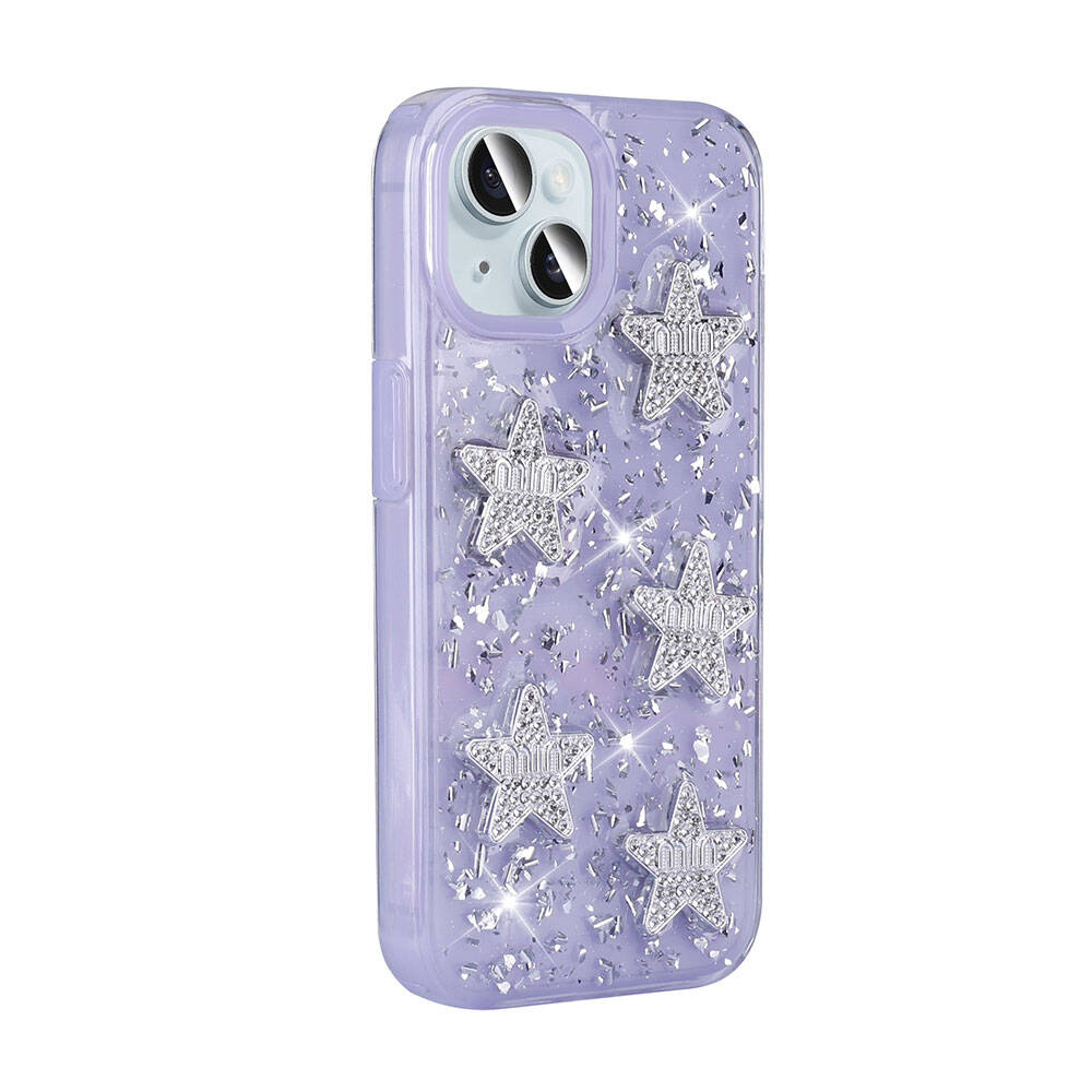 Apple iPhone 14 Kılıf Airbagli Simli Arka Yüzey Zore Işıltı Silikon Kapak Lila