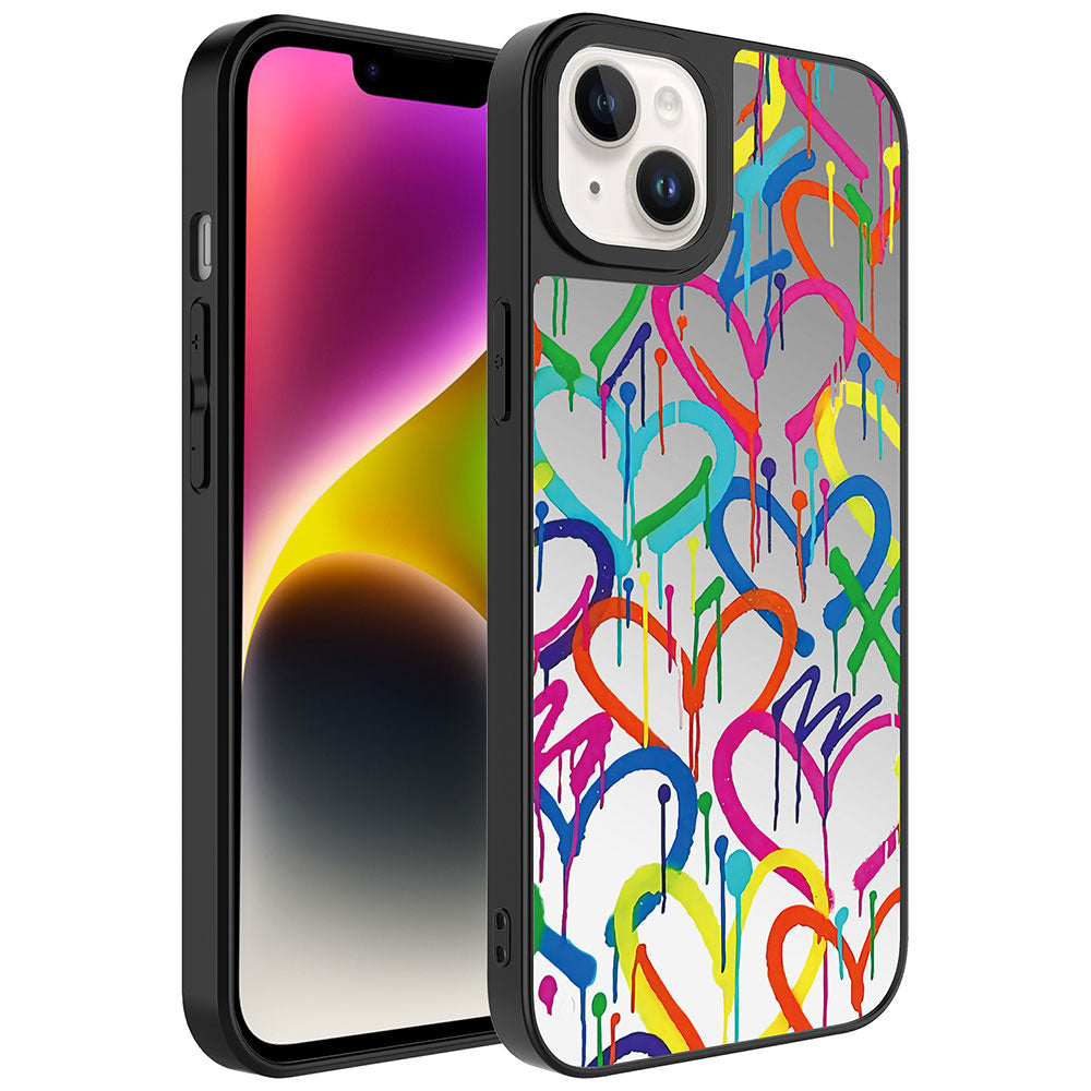 Apple iPhone 14 Kılıf Aynalı Desenli Kamera Korumalı Parlak Zore Mirror Kapak Kalp