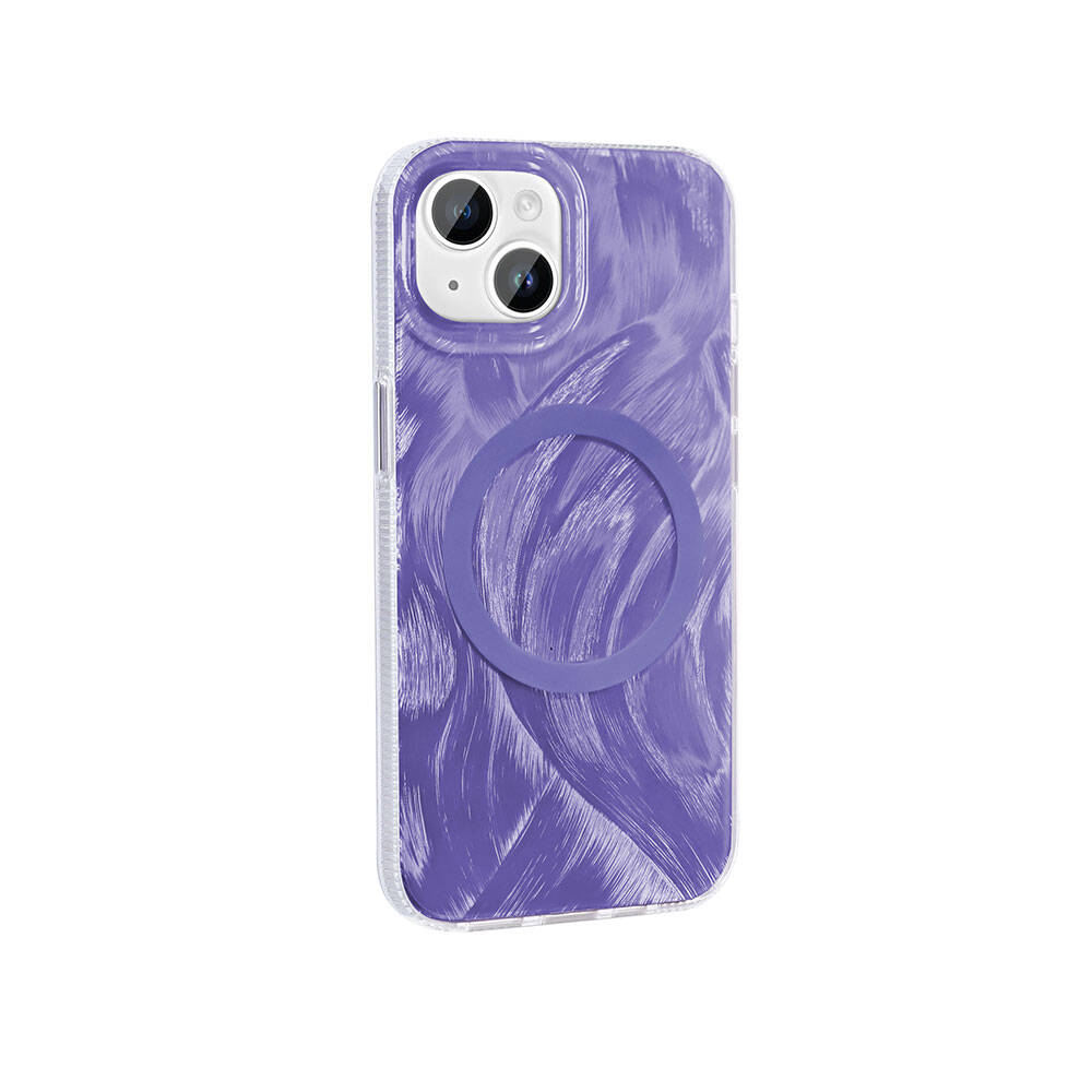 Apple iPhone 14 Plus Kılıf M-safe Şarj Özellikli Fırça Boya Desenli Zore Palet Kapak Mor