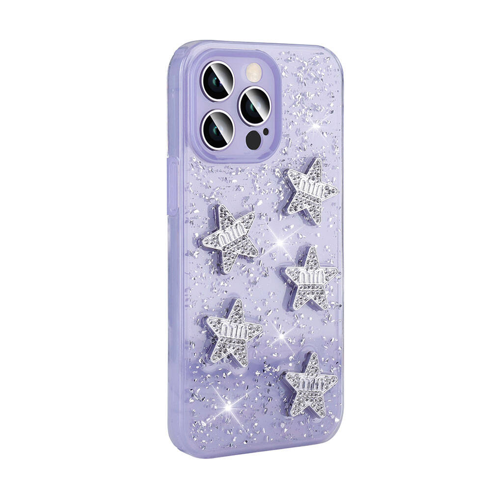Apple iPhone 14 Pro Max Kılıf Airbagli Simli Arka Yüzey Zore Işıltı Silikon Kapak Lila