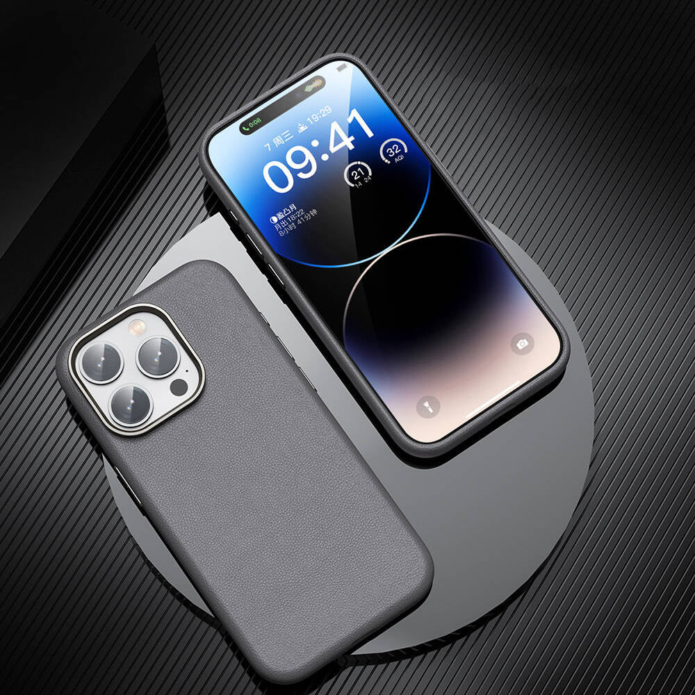 Apple iPhone 14 Pro Max Kılıf M-safe Şarj Özellikli PU Deri Zore Adora Kapak Koyu Gri