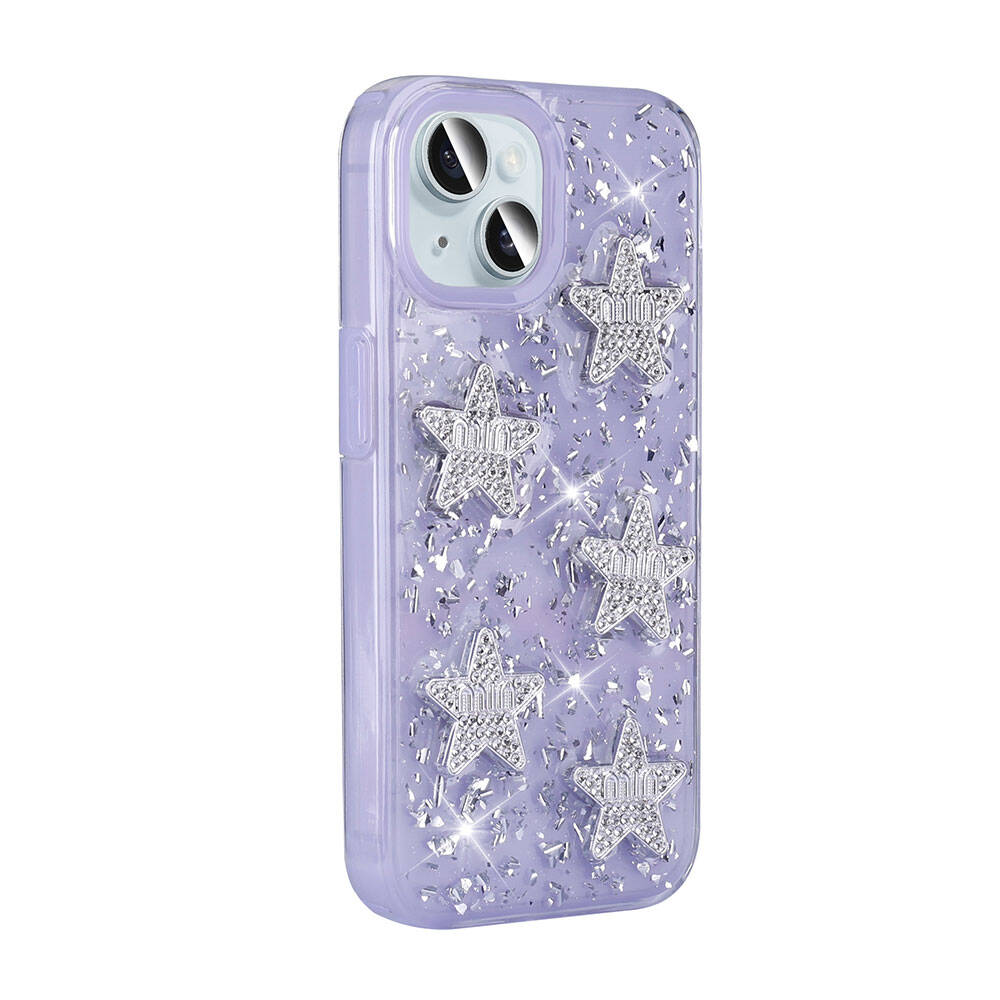 Apple iPhone 15 Kılıf Airbagli Simli Arka Yüzey Zore Işıltı Silikon Kapak Beyaz-Yıldız