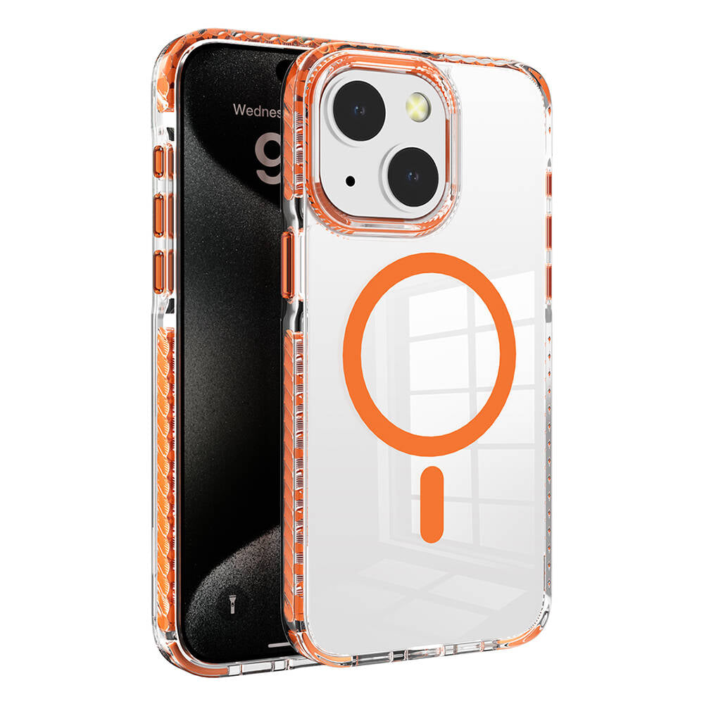 Apple iPhone 15 Kılıf M-safe Şarj Özellikli Airbagli Takılabilir Askı Aparatlı Zore Nana Kapak Turuncu