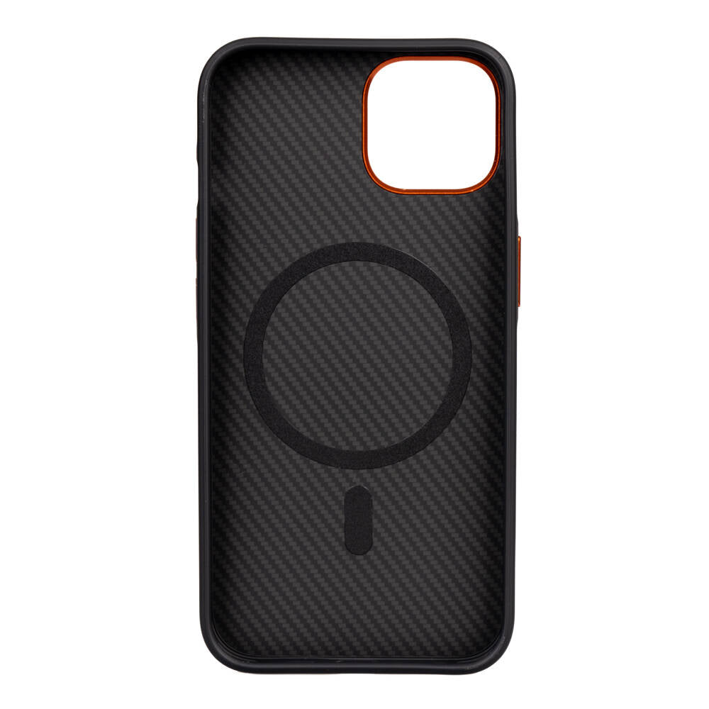 Apple iPhone 15 Kılıf M-safe Şarj Özellikli Karbon Fiber Görünümlü Zore Kamp Kapak Turuncu