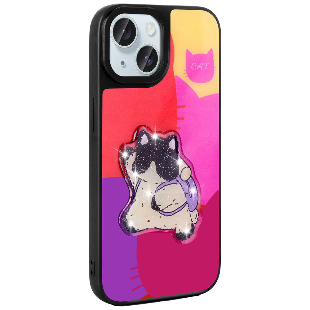 Apple iPhone 15 Kılıf Parlayan Kabartmalı İkonik Figürlü Zore Amas Silikon Kapak Mor