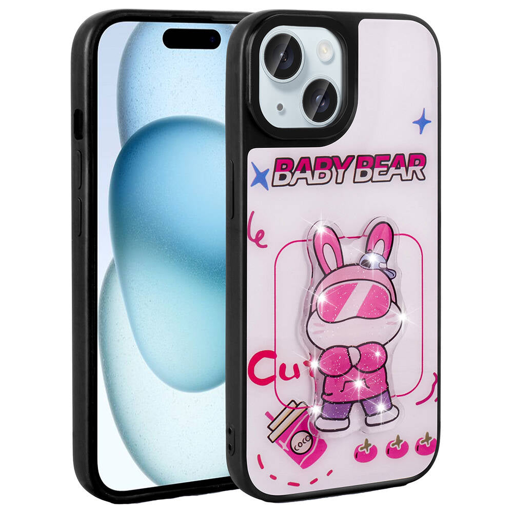 Apple iPhone 15 Kılıf Parlayan Kabartmalı İkonik Figürlü Zore Amas Silikon Kapak Beyaz