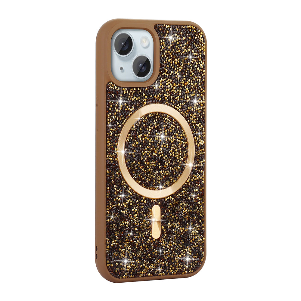 Apple iPhone 15 Kılıf Pırlanta Tasarımlı M-safe Şarj Özellikli Zore Mozaik Silikon Kapak Desert Titanyum