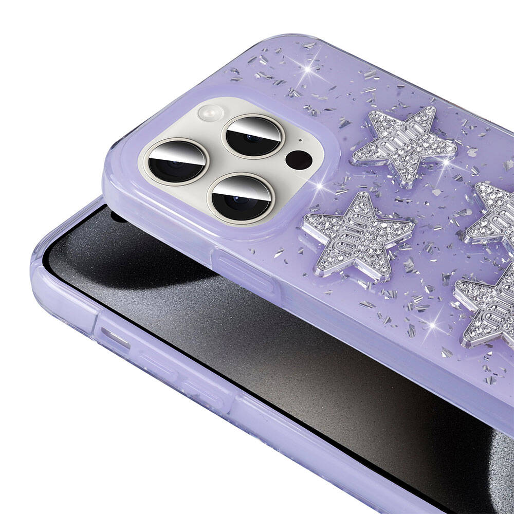 Apple iPhone 15 Pro Kılıf Airbagli Simli Arka Yüzey Zore Işıltı Silikon Kapak Lila