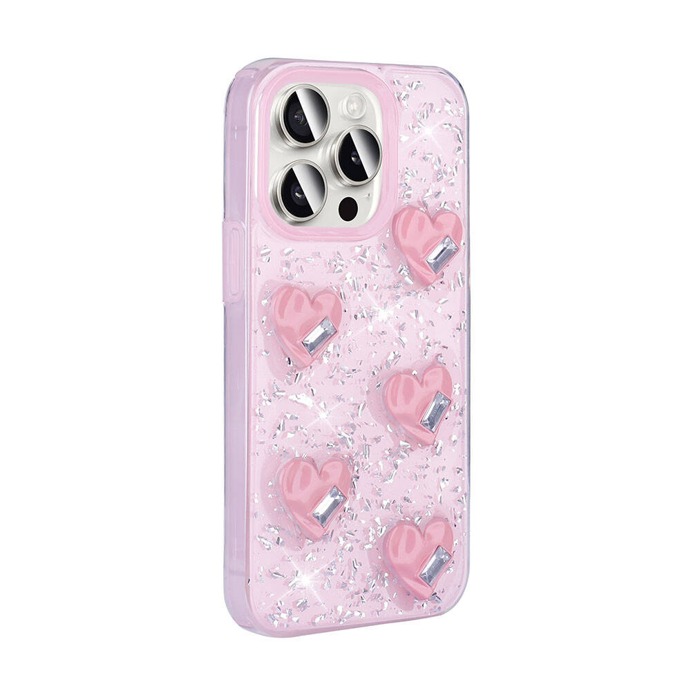 Apple iPhone 15 Pro Kılıf Airbagli Simli Arka Yüzey Zore Işıltı Silikon Kapak Pembe