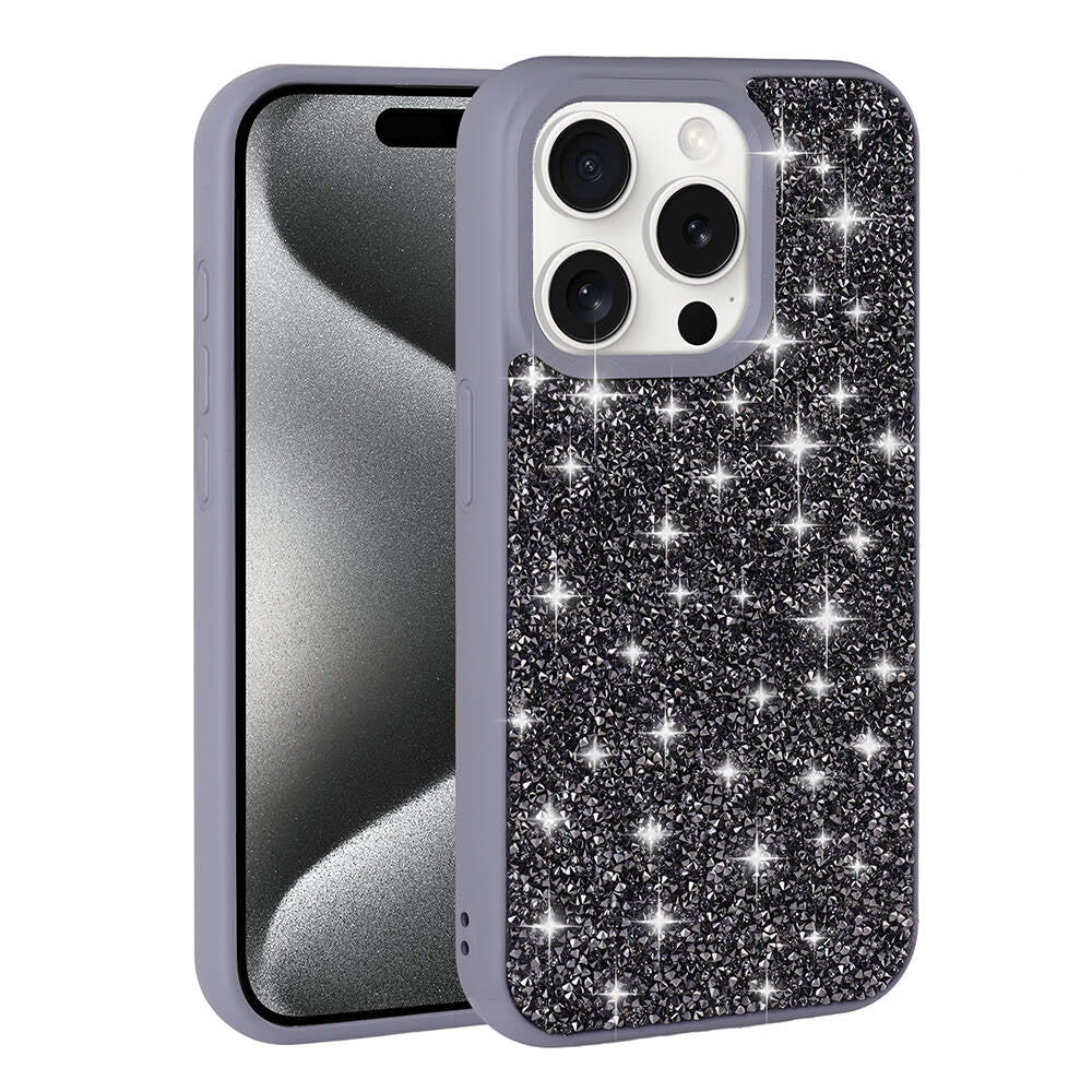Apple iPhone 15 Pro Kılıf Parlak Taşlı Tasarım Zore Pırlanta Kapak Siyah