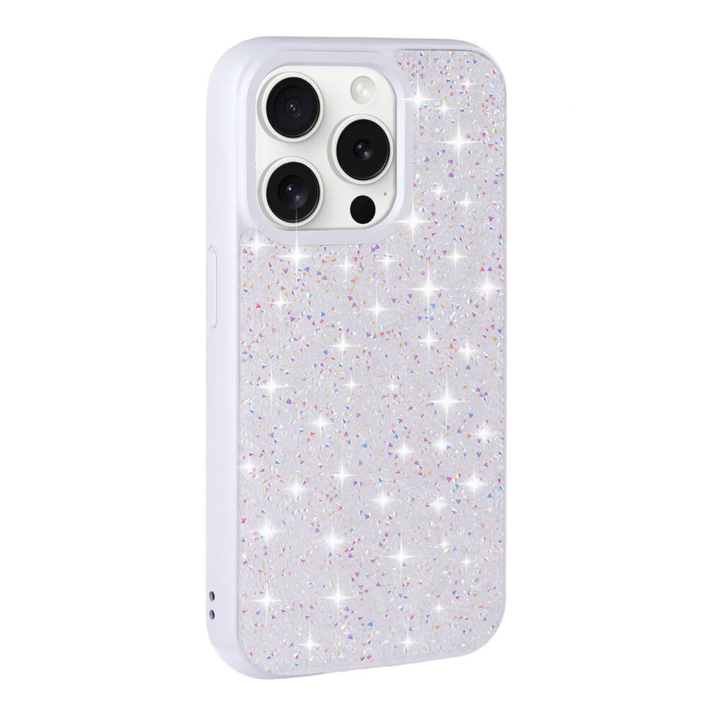 Apple iPhone 15 Pro Kılıf Parlak Taşlı Tasarım Zore Pırlanta Kapak Beyaz
