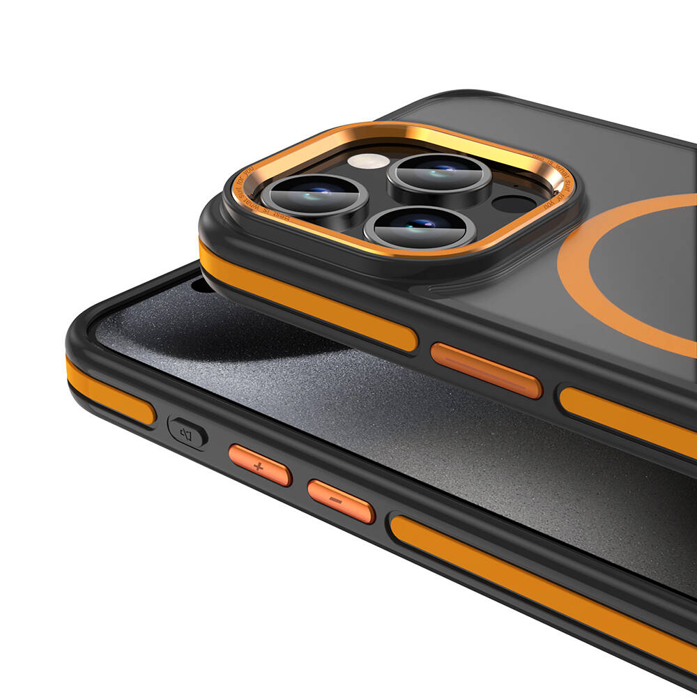 Apple iPhone 15 Pro Max Kılıf M-safe Şarj Özellikli Mat Görünümlü Zore Ant Kapak Turuncu