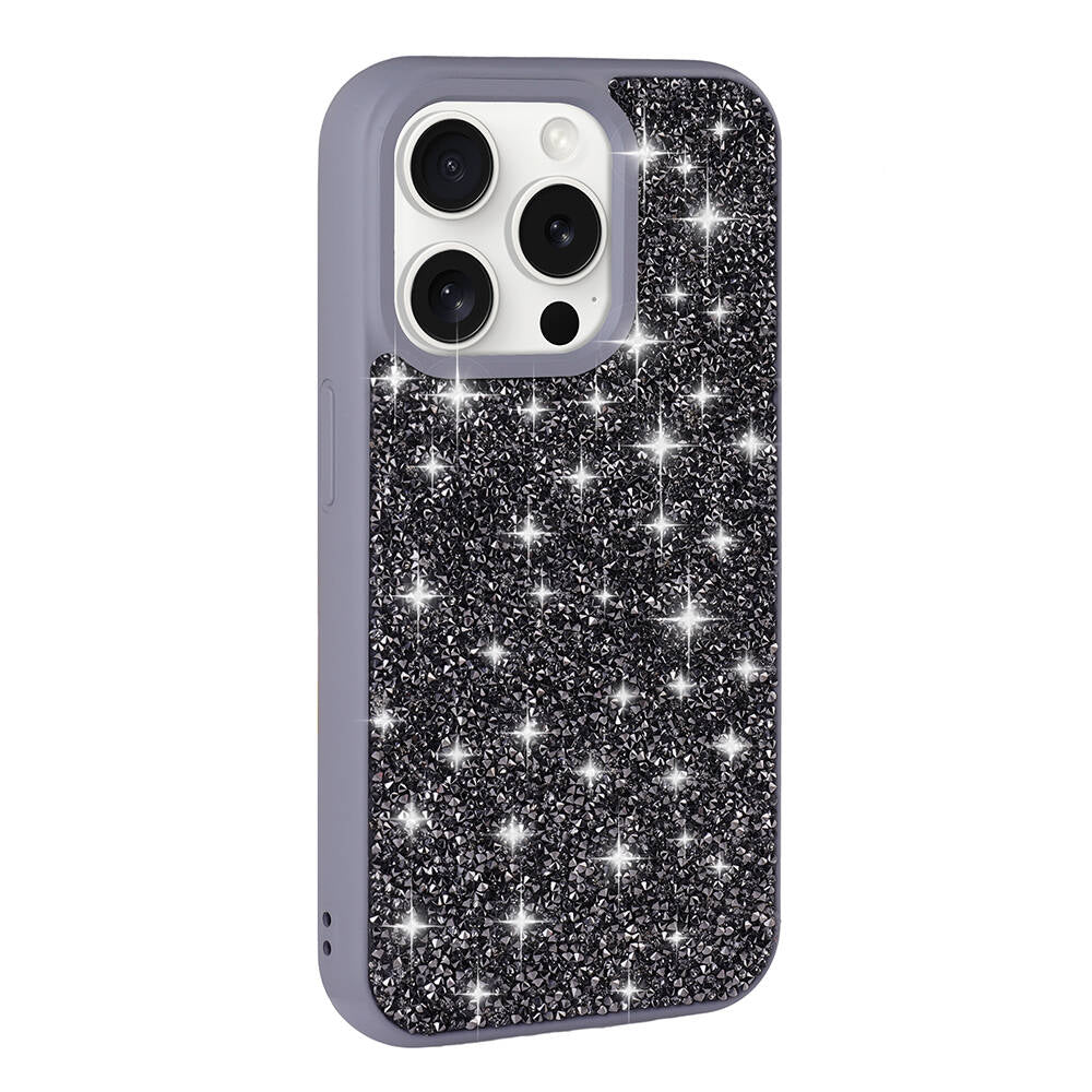 Apple iPhone 15 Pro Max Kılıf Parlak Taşlı Tasarım Zore Pırlanta Kapak Gri