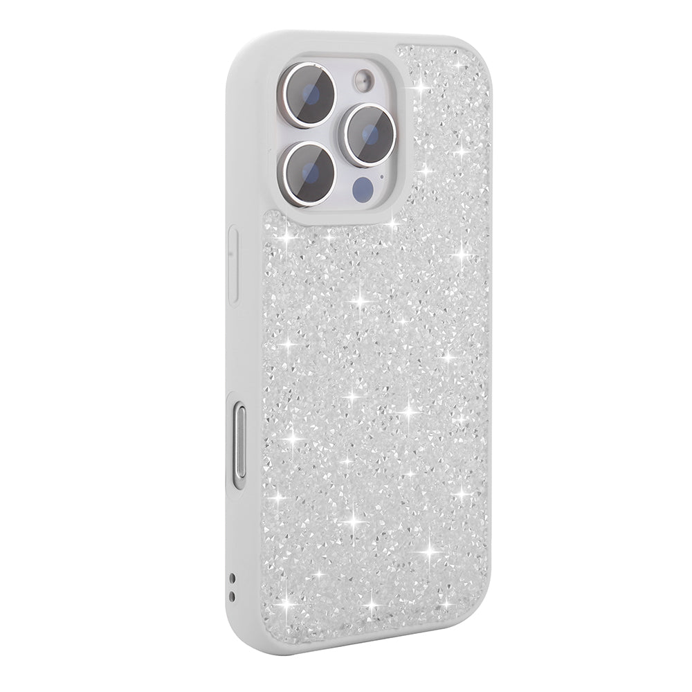 Apple iPhone 16 Pro Kılıf Parlak Taşlı Tasarım Zore Pırlanta Kapak Beyaz