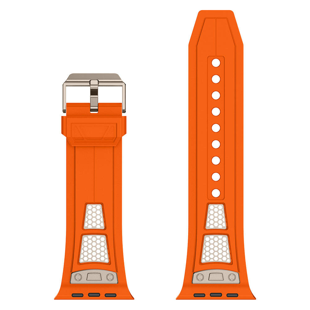 Apple Watch 7 45mm Zore KRD-117 Hava Alabilen Delikli Metal Süslemeli Desenli Silikon Kordon Titanyum-Siyah
