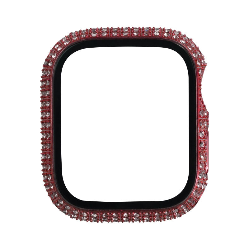 Apple Watch 7 45mm Zore Watch Gard 24 Kenarları Taşlı Sert PC Kasa Ve Ekran Koruyucu Pembe