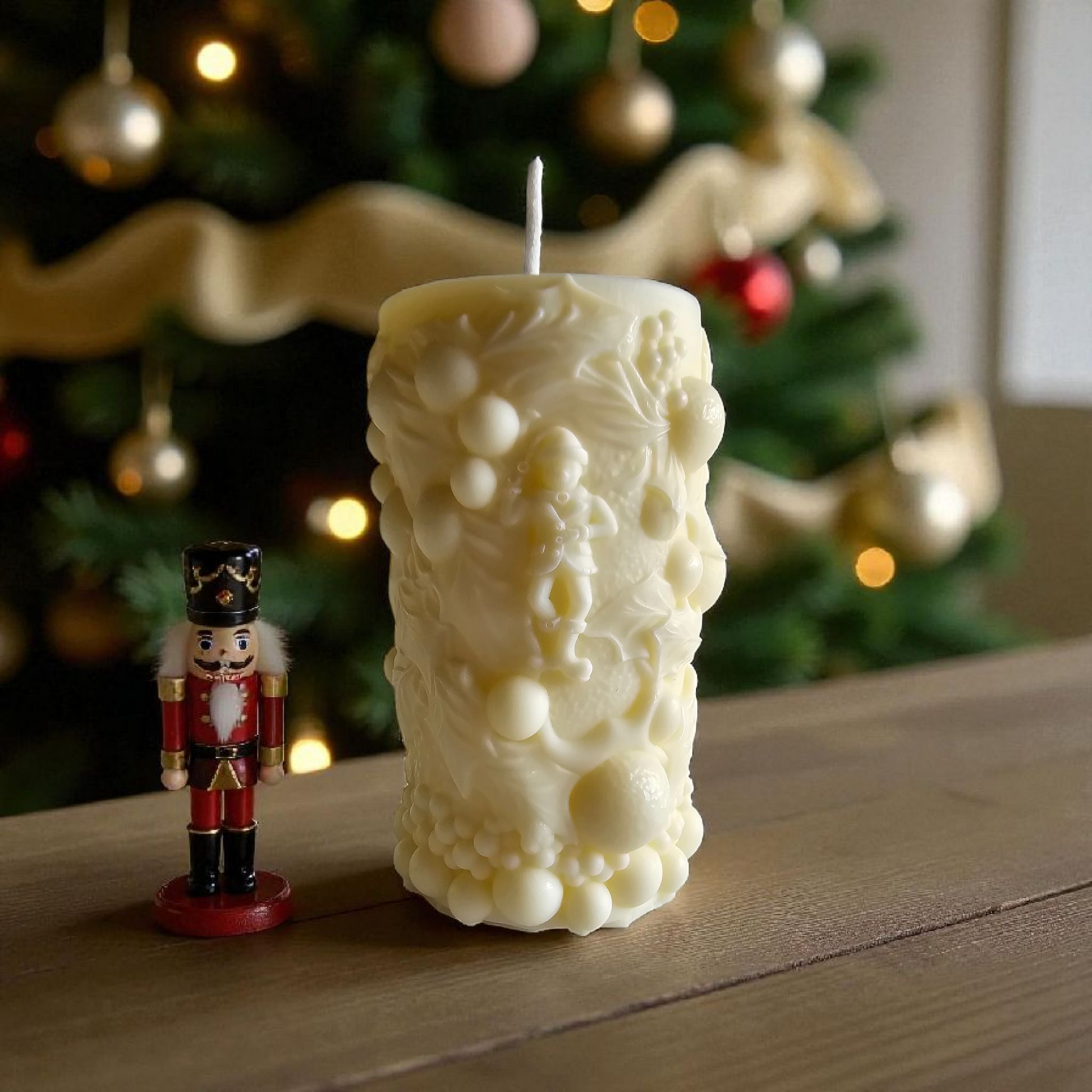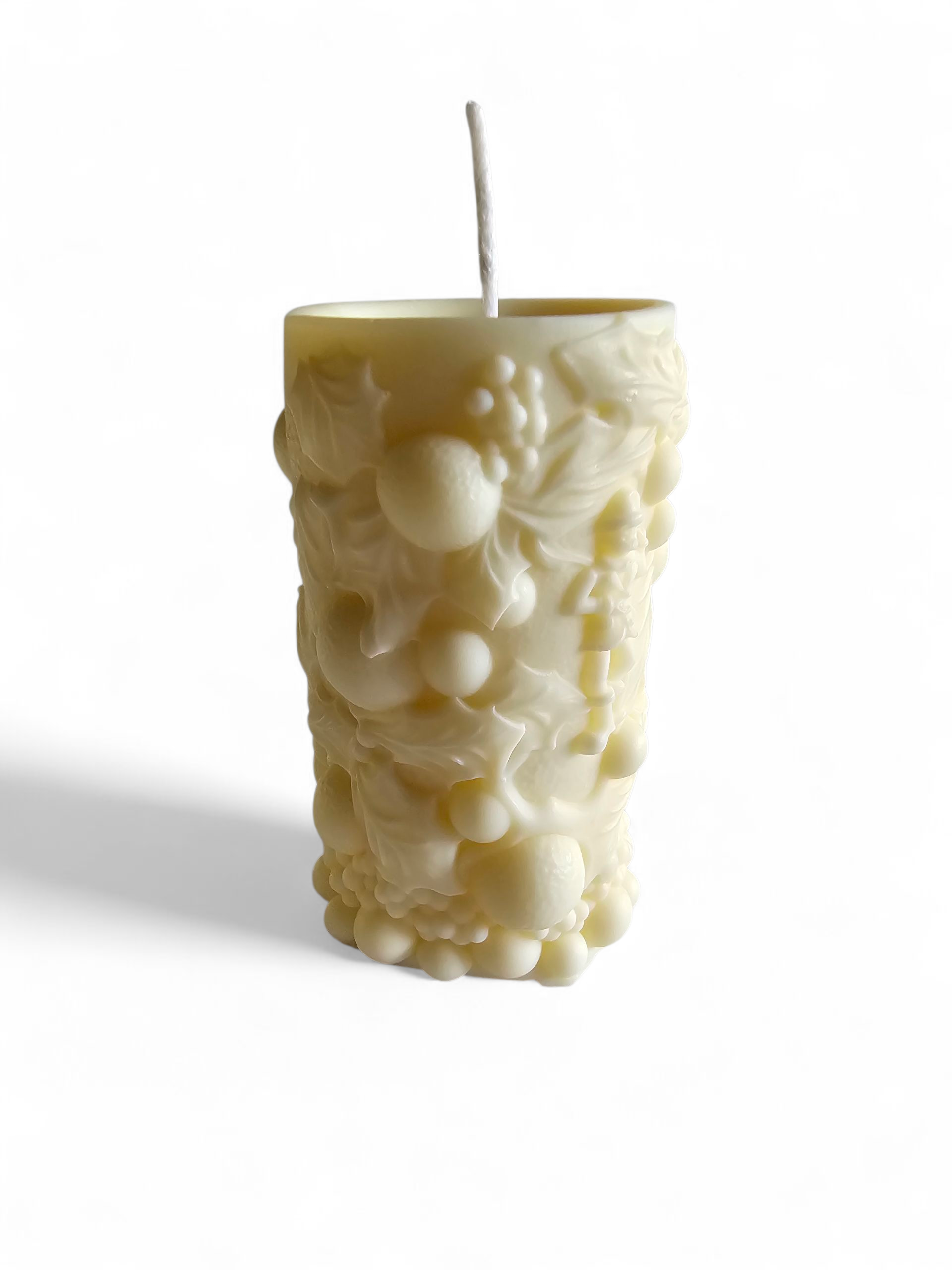 Bu sadece bir mum değil, krem rengi balmumu ve soya wax doğal malzemelerle, donmuş bir kış masalı.
