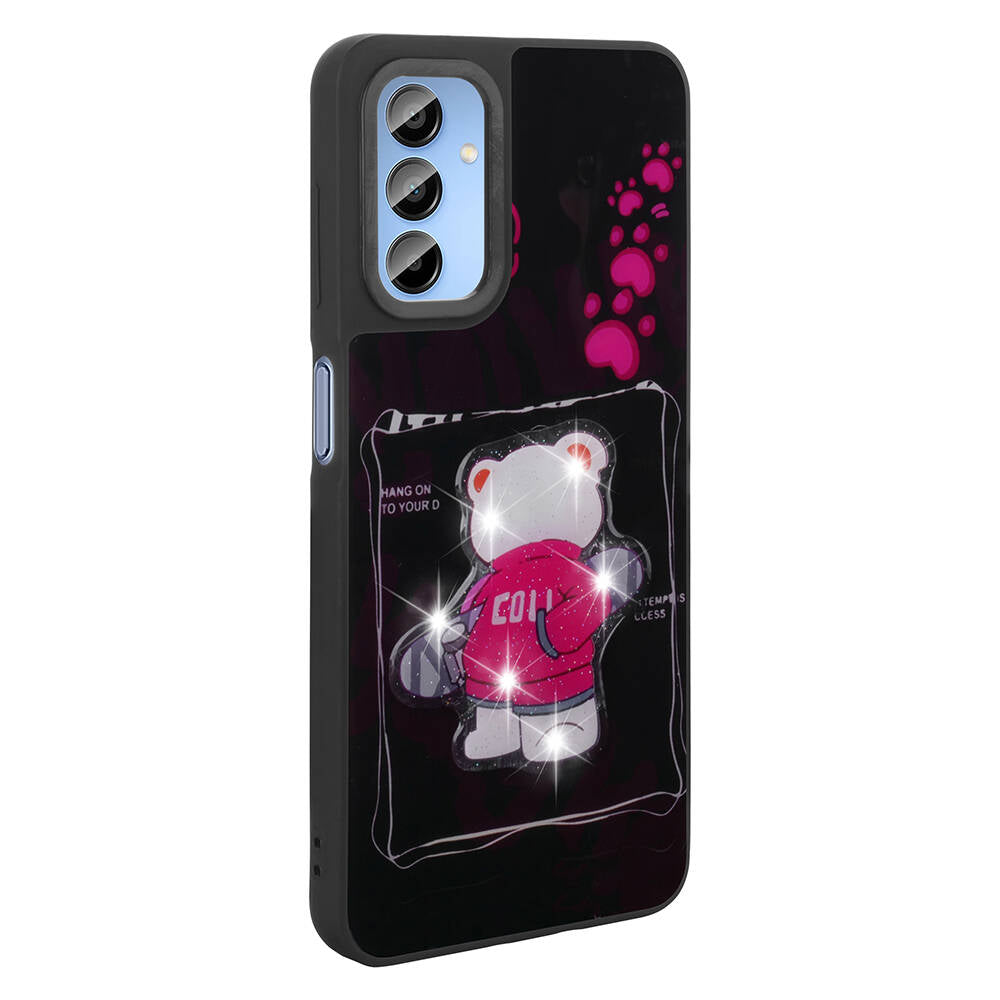 Galaxy A15 Kılıf Parlayan Kabartmalı İkonik Figürlü Zore Amas Silikon Kapak Pembe