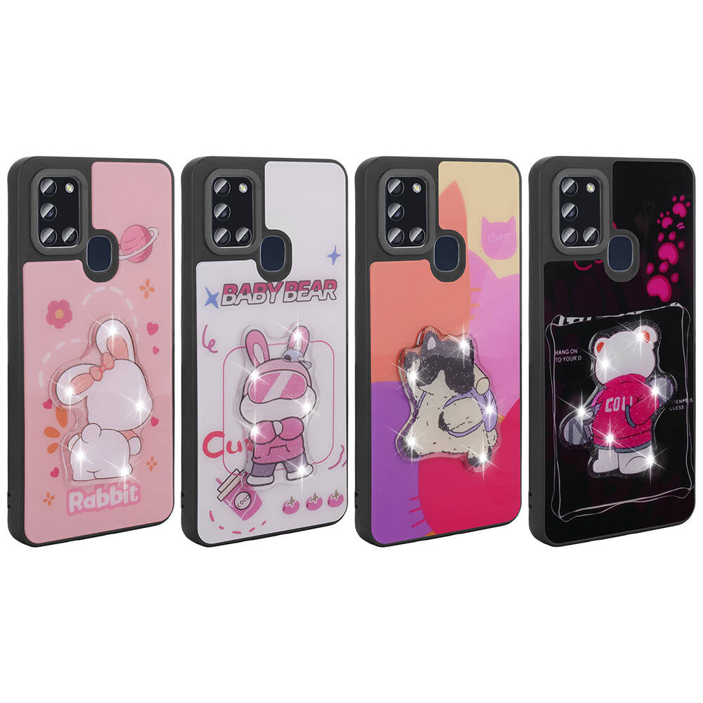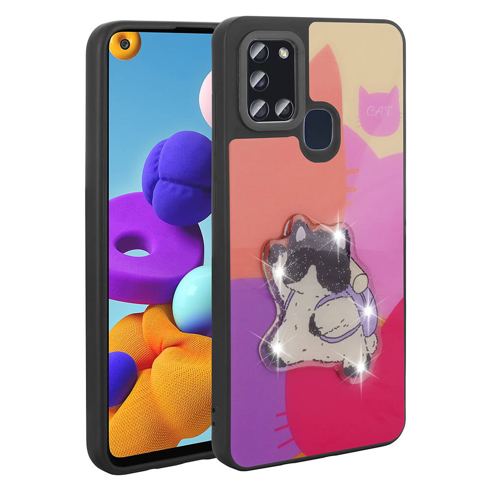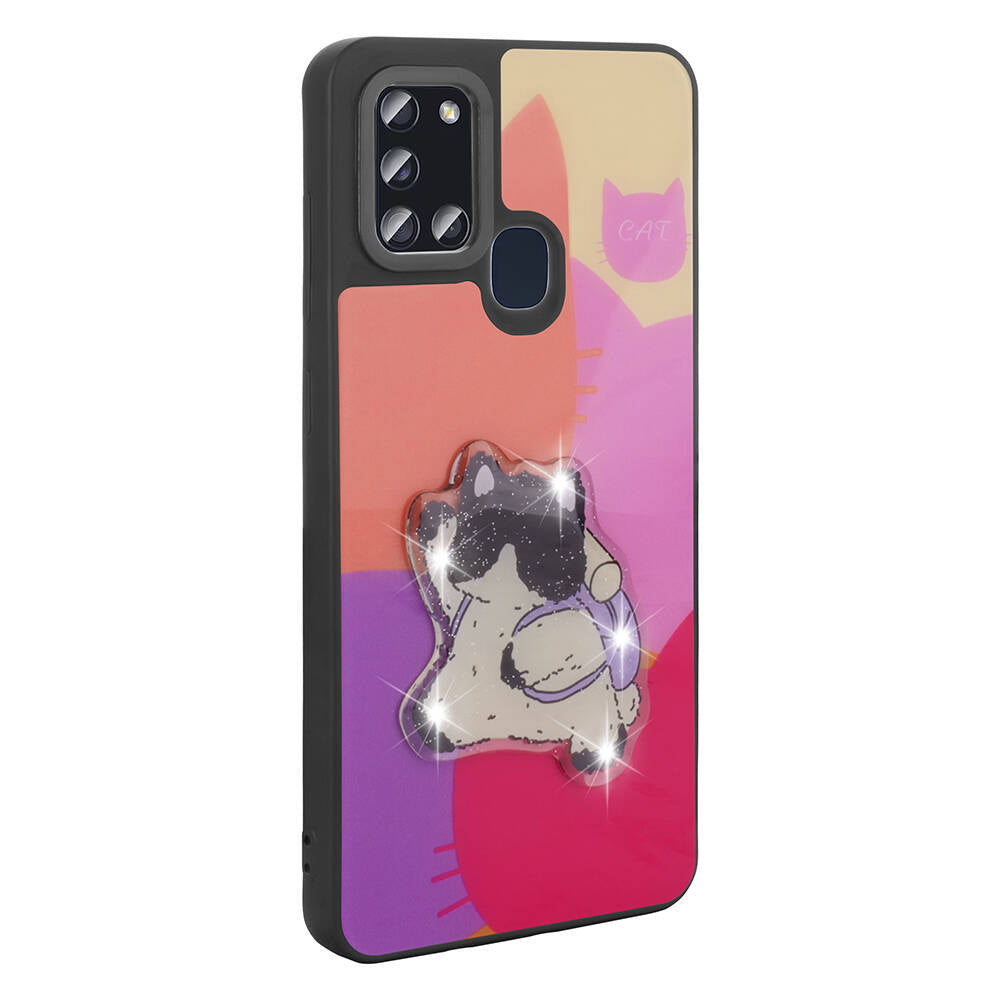 Galaxy A21S Kılıf Parlayan Kabartmalı İkonik Figürlü Zore Amas Silikon Kapak Mor