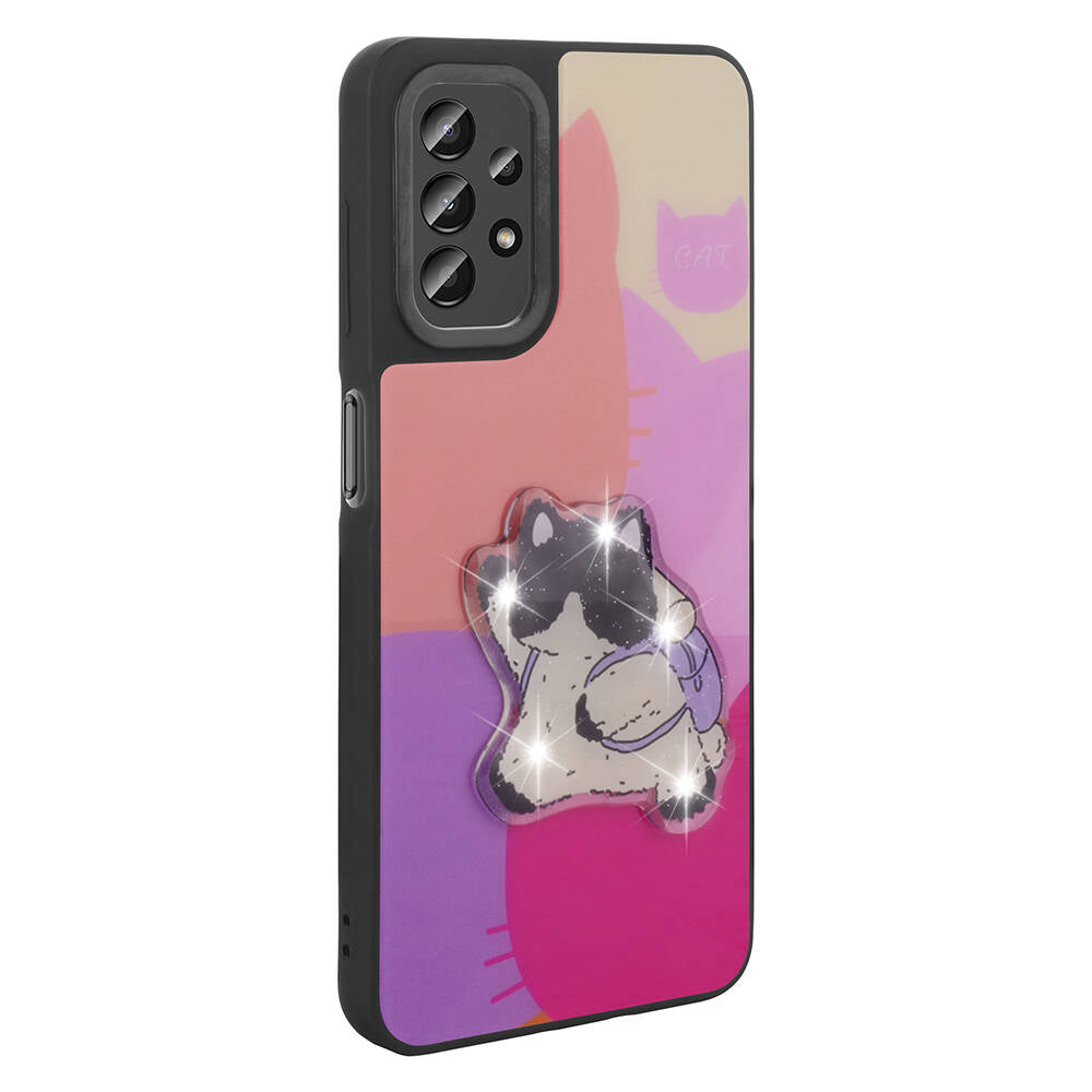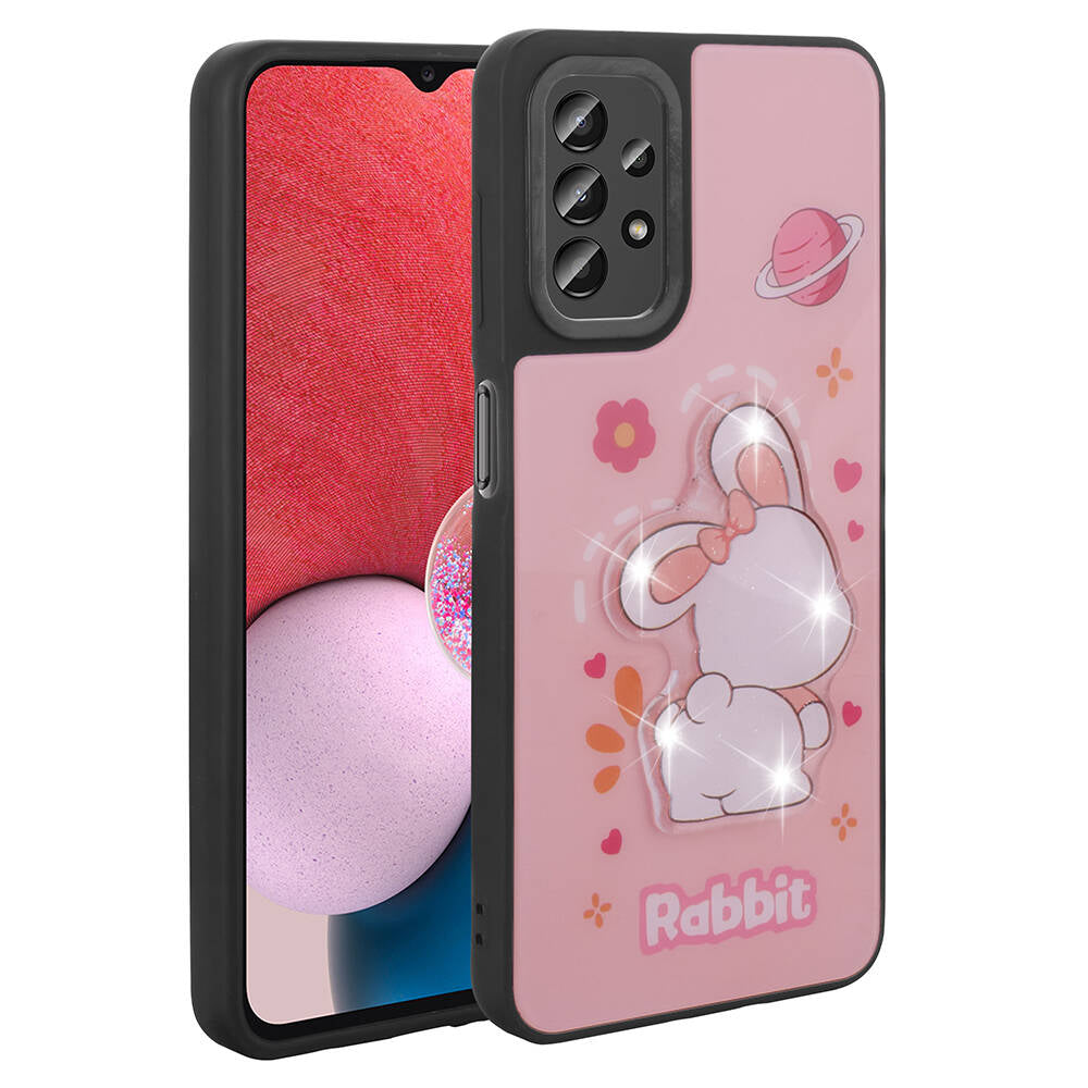 Galaxy A23 Kılıf Parlayan Kabartmalı İkonik Figürlü Zore Amas Silikon Kapak Pembe