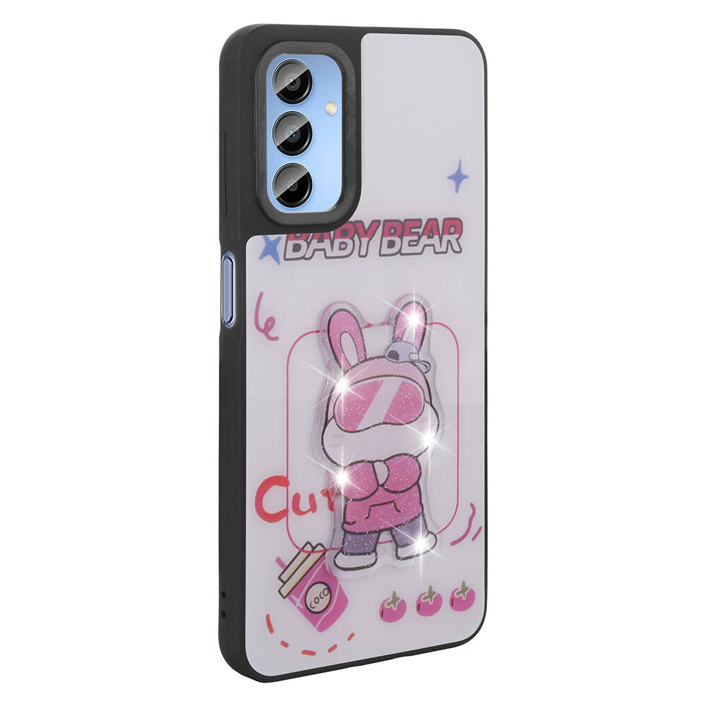 Galaxy A25 Kılıf Parlayan Kabartmalı İkonik Figürlü Zore Amas Silikon Kapak Pembe