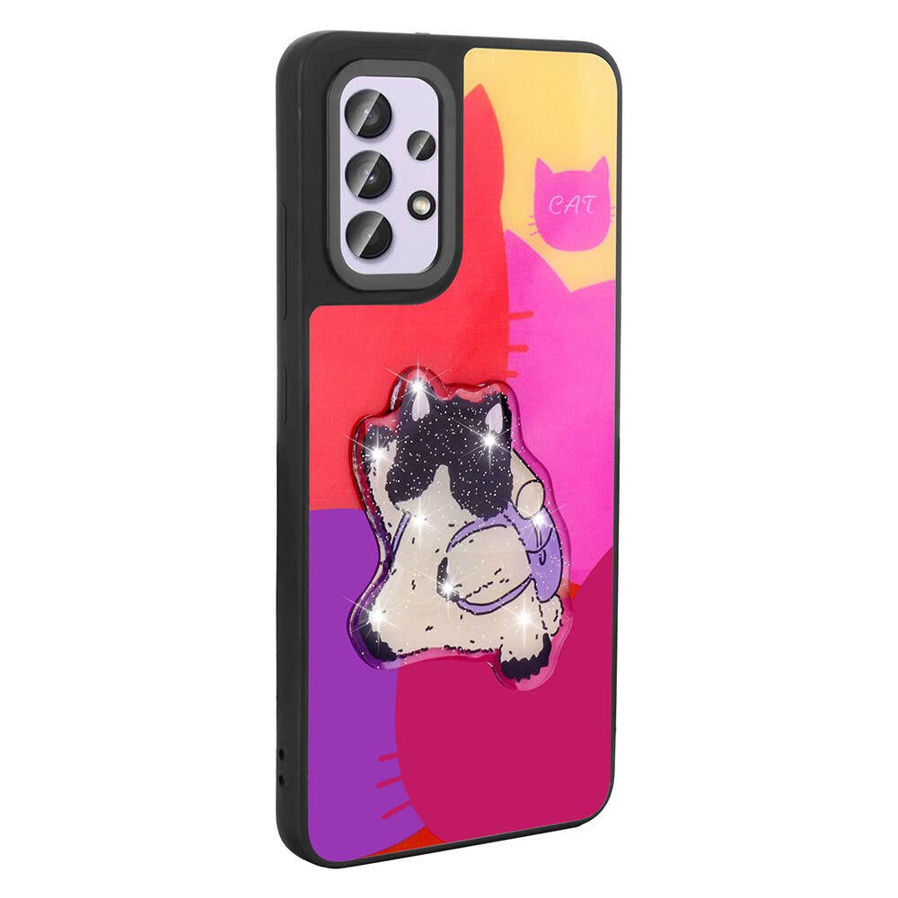 Galaxy A32 4G Kılıf Parlayan Kabartmalı İkonik Figürlü Zore Amas Silikon Kapak Mor