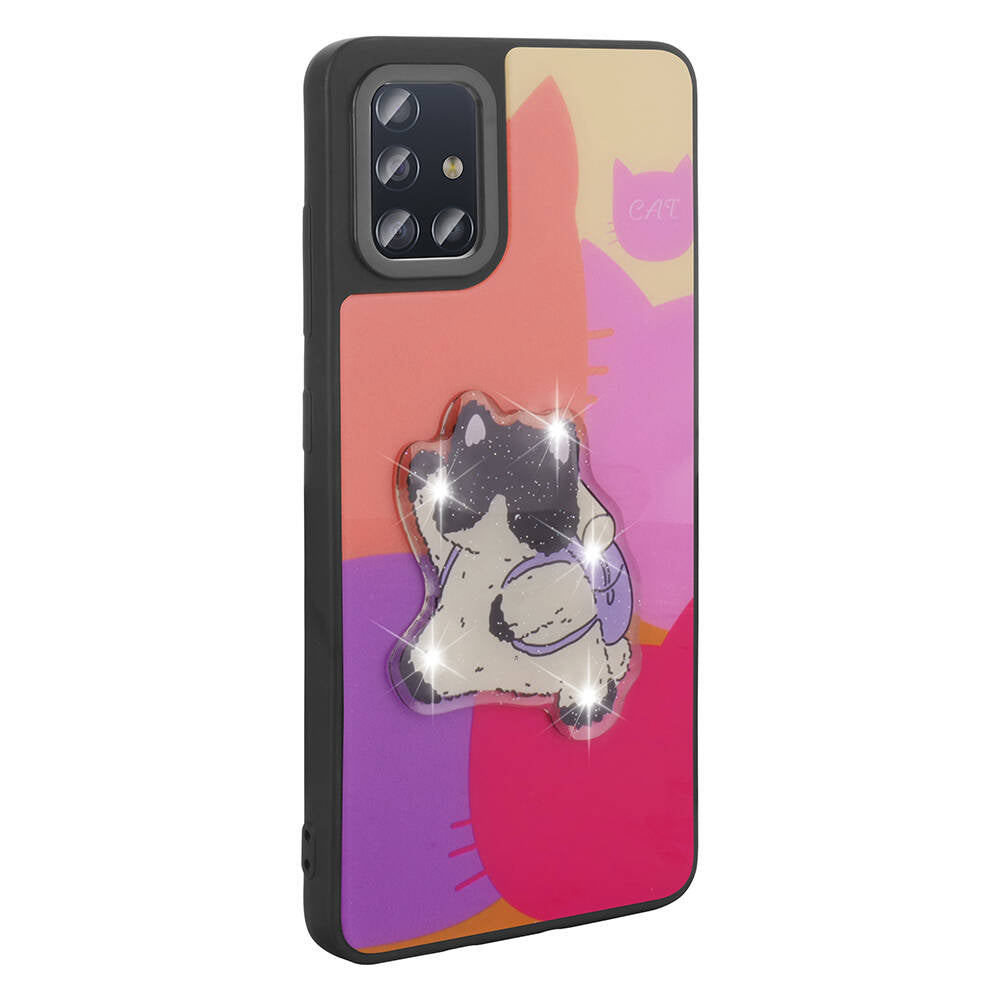 Galaxy A51 Kılıf Parlayan Kabartmalı İkonik Figürlü Zore Amas Silikon Kapak Mor