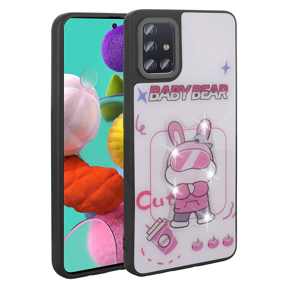 Galaxy A51 Kılıf Parlayan Kabartmalı İkonik Figürlü Zore Amas Silikon Kapak Beyaz