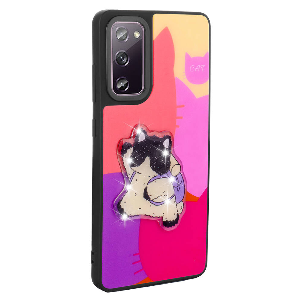 Galaxy S20 FE Kılıf Parlayan Kabartmalı İkonik Figürlü Zore Amas Silikon Kapak Pembe