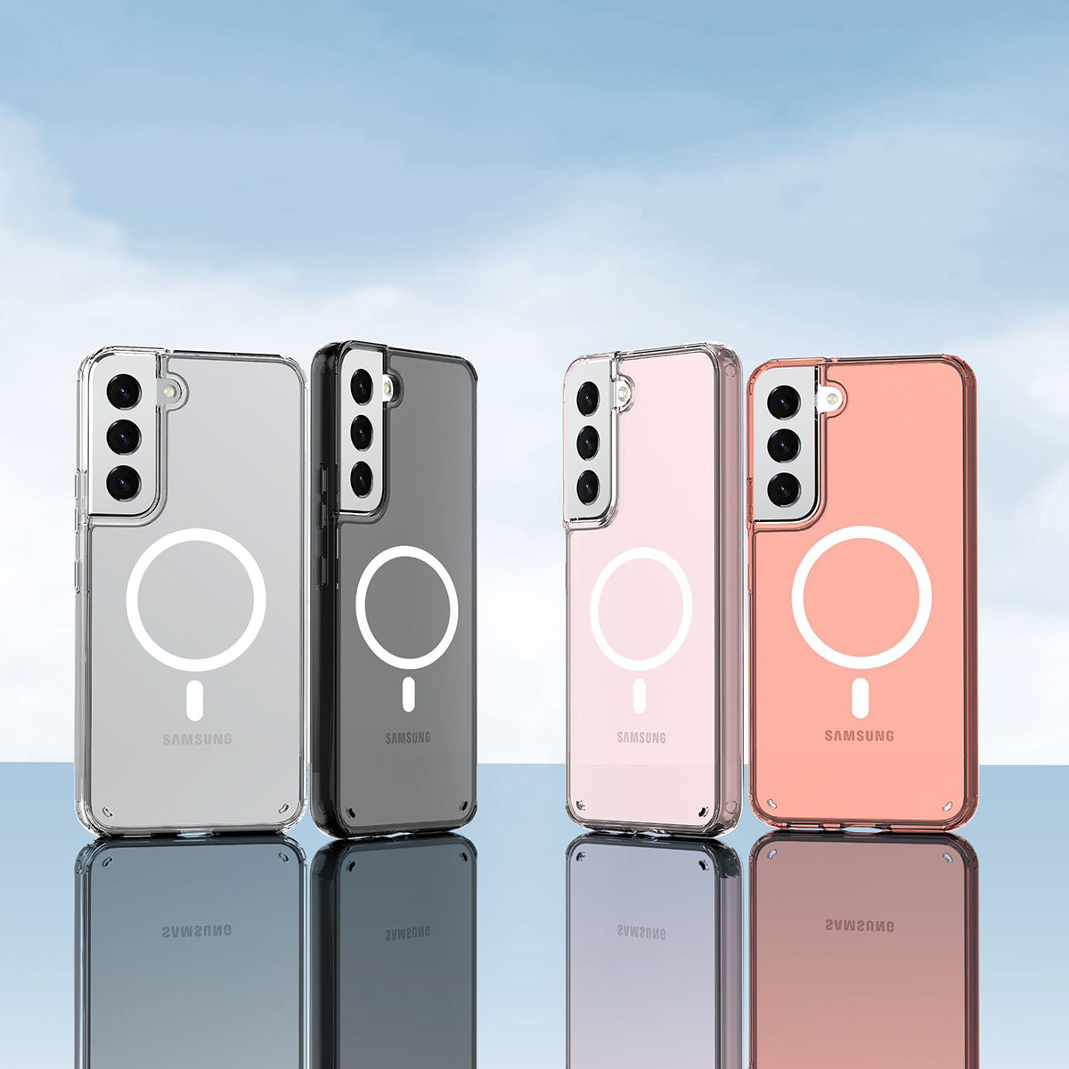 Galaxy S22 Kılıf M-safe Şarj Özellikli Şeffaf Sert PC Zore Embos Kapak Renksiz