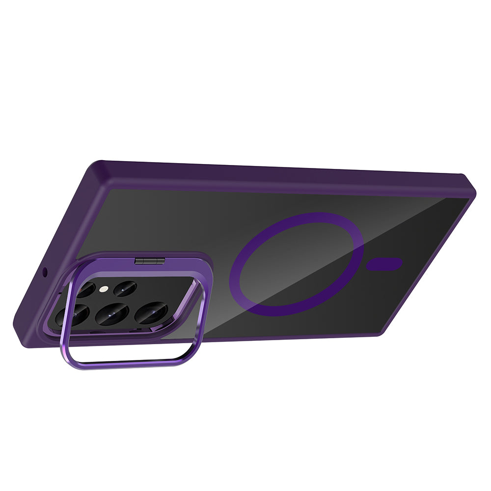 Galaxy S22 Ultra Kılıf Standlı ve Kamera Lens Hediyeli M-Safe Şarj Özellikli Zore Etro Kapak Derin Mor