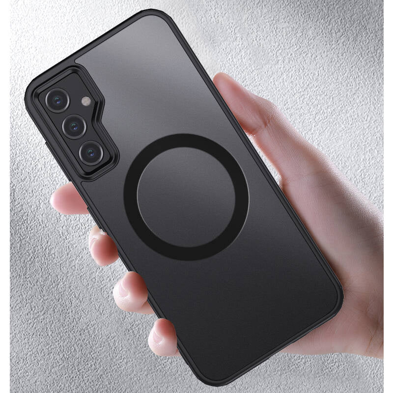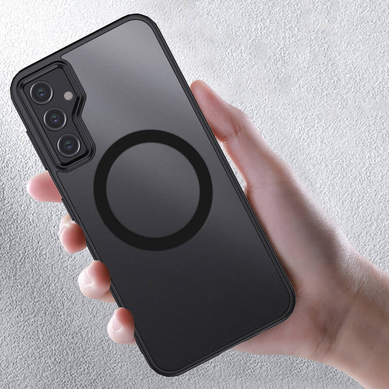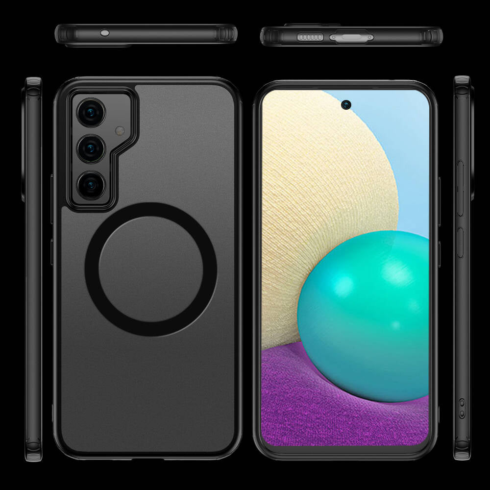 Galaxy S23 FE Kılıf Sert PC Arka Yüzey Wireless Şarj Özellikli Zore Flet M-safe Kapak Siyah