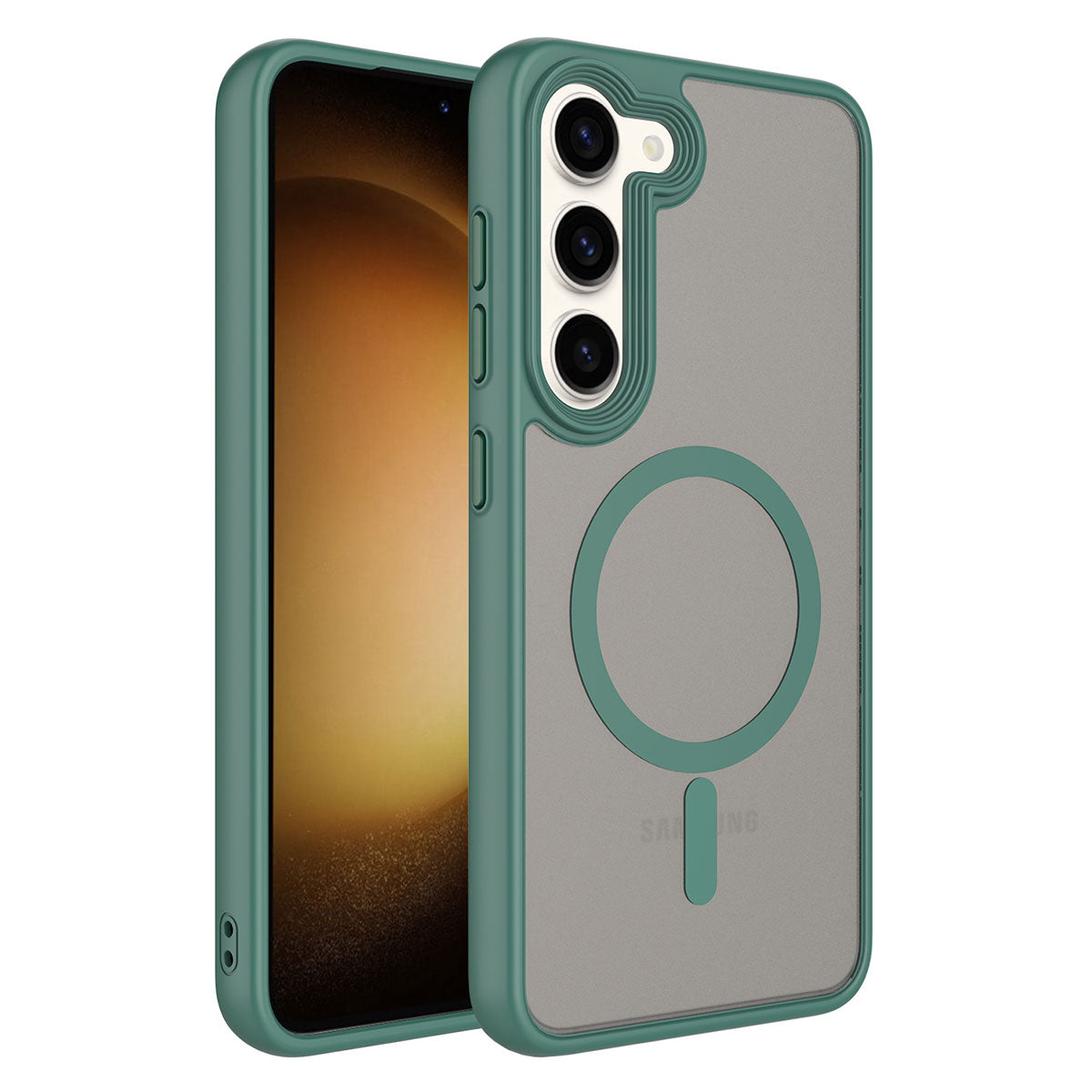 Galaxy S23 Kılıf Mat Arka Yüzey Wireless Şarj Özellikli Zore Flet M-safe Kapak Yeşil