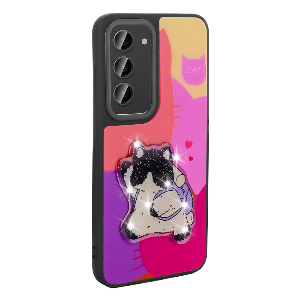 Galaxy S23 Kılıf Parlayan Kabartmalı İkonik Figürlü Zore Amas Silikon Kapak Siyah