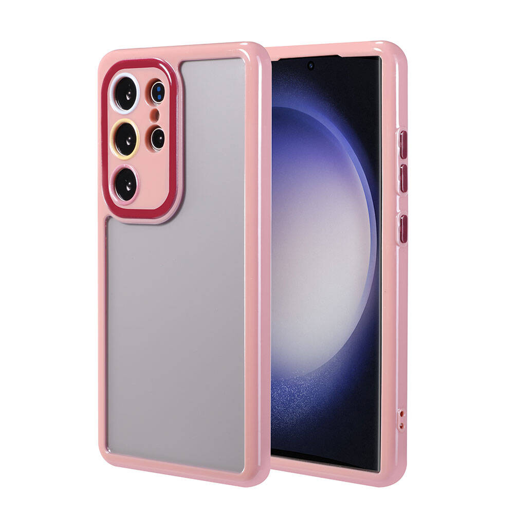 Galaxy S23 Ultra Kılıf Kamera Korumalı Renkli Kenar ve Çerçeve Tasarımlı Zore Vitamin Kapak Mürdüm