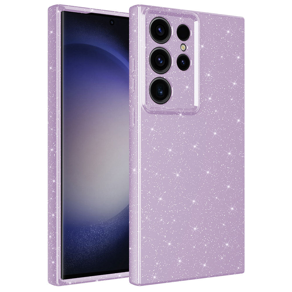 Galaxy S23 Ultra Kılıf Kamera Korumalı Simli Lüks Zore Koton Kapak Lila