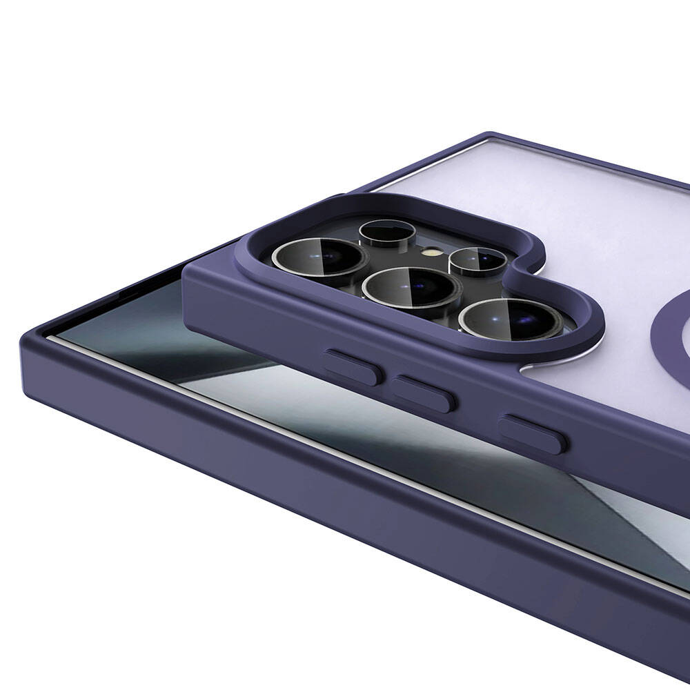 Galaxy S23 Ultra Kılıf M-safe Şarj Özellikli Mat Arka Yüzey Zore Sio Kapak Lacivert